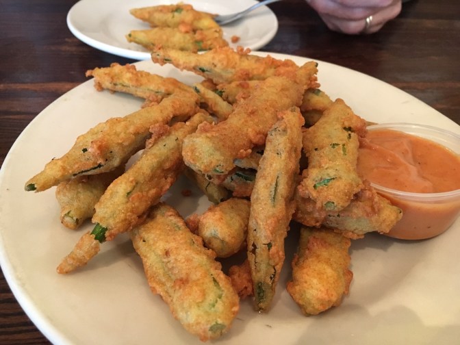 At lunch we enjoyed some local shrimp and fried okra and a special chocolate and Coca-Cola cake for dessert.