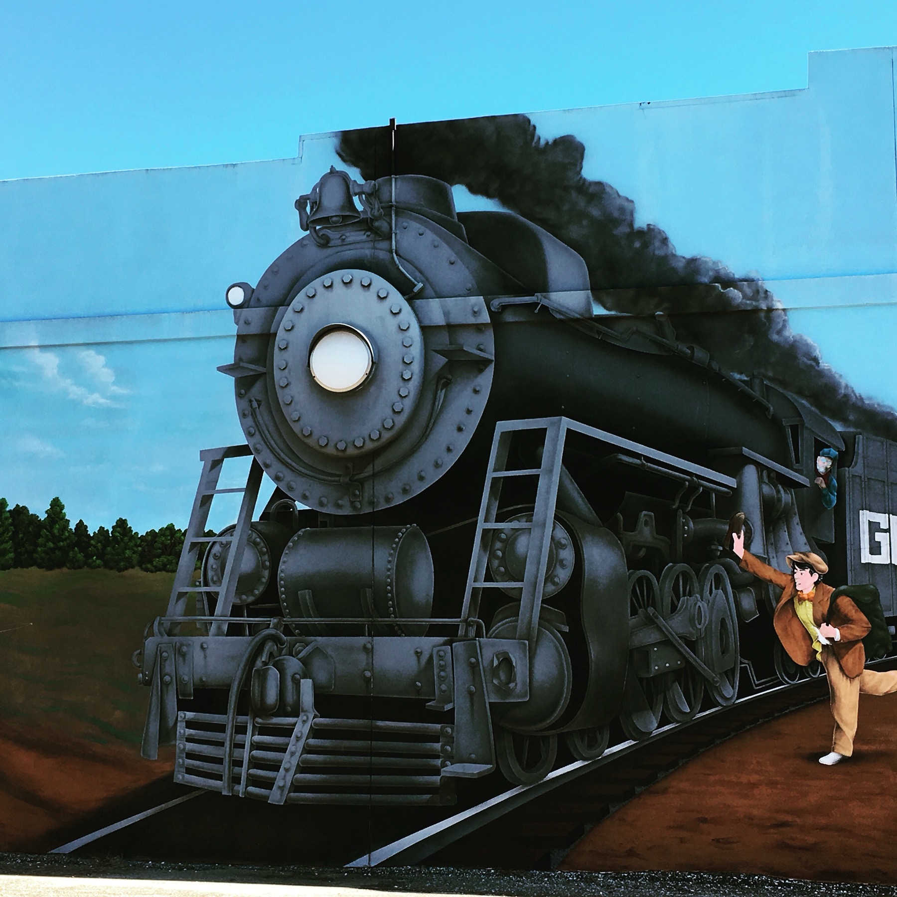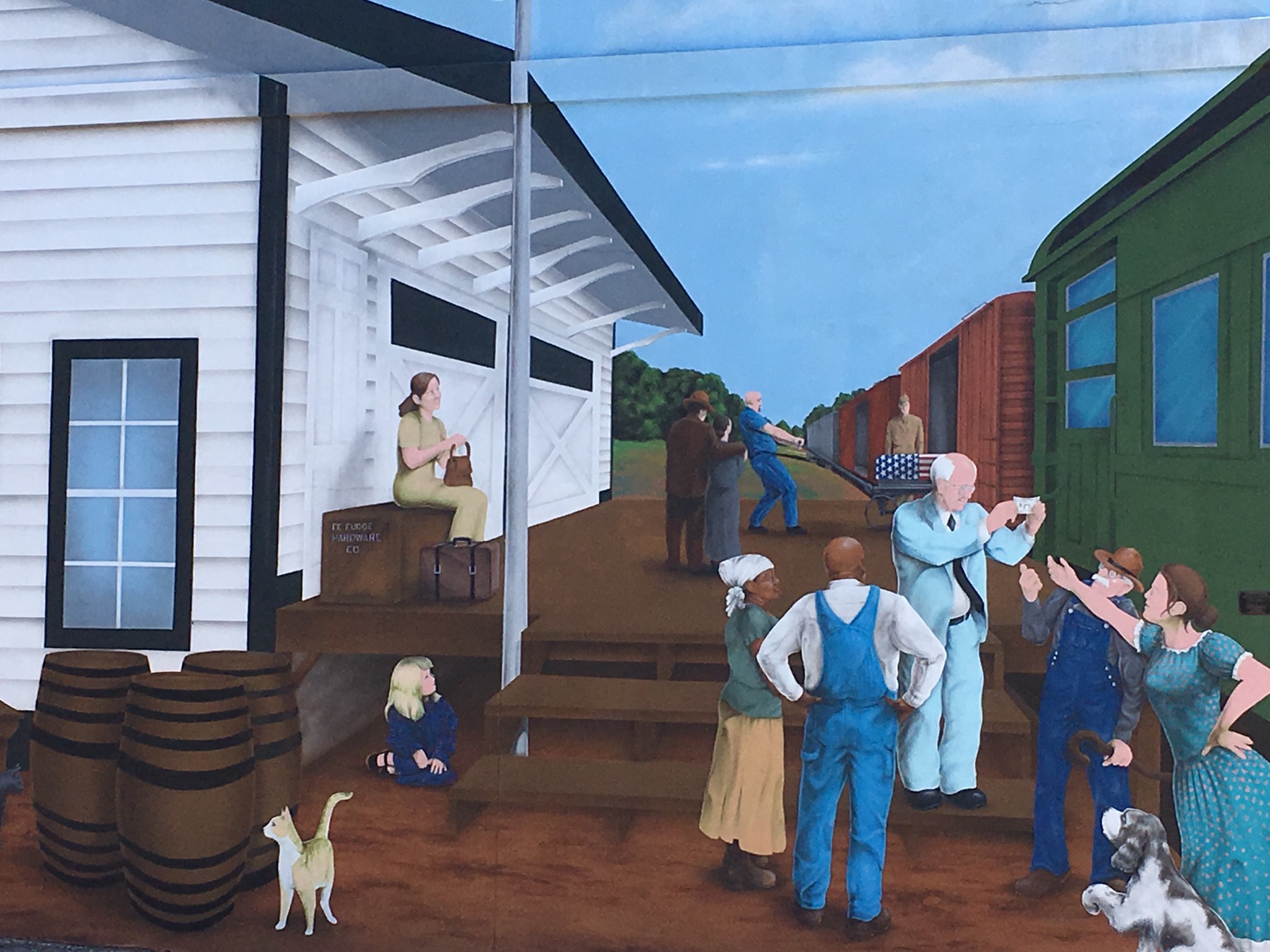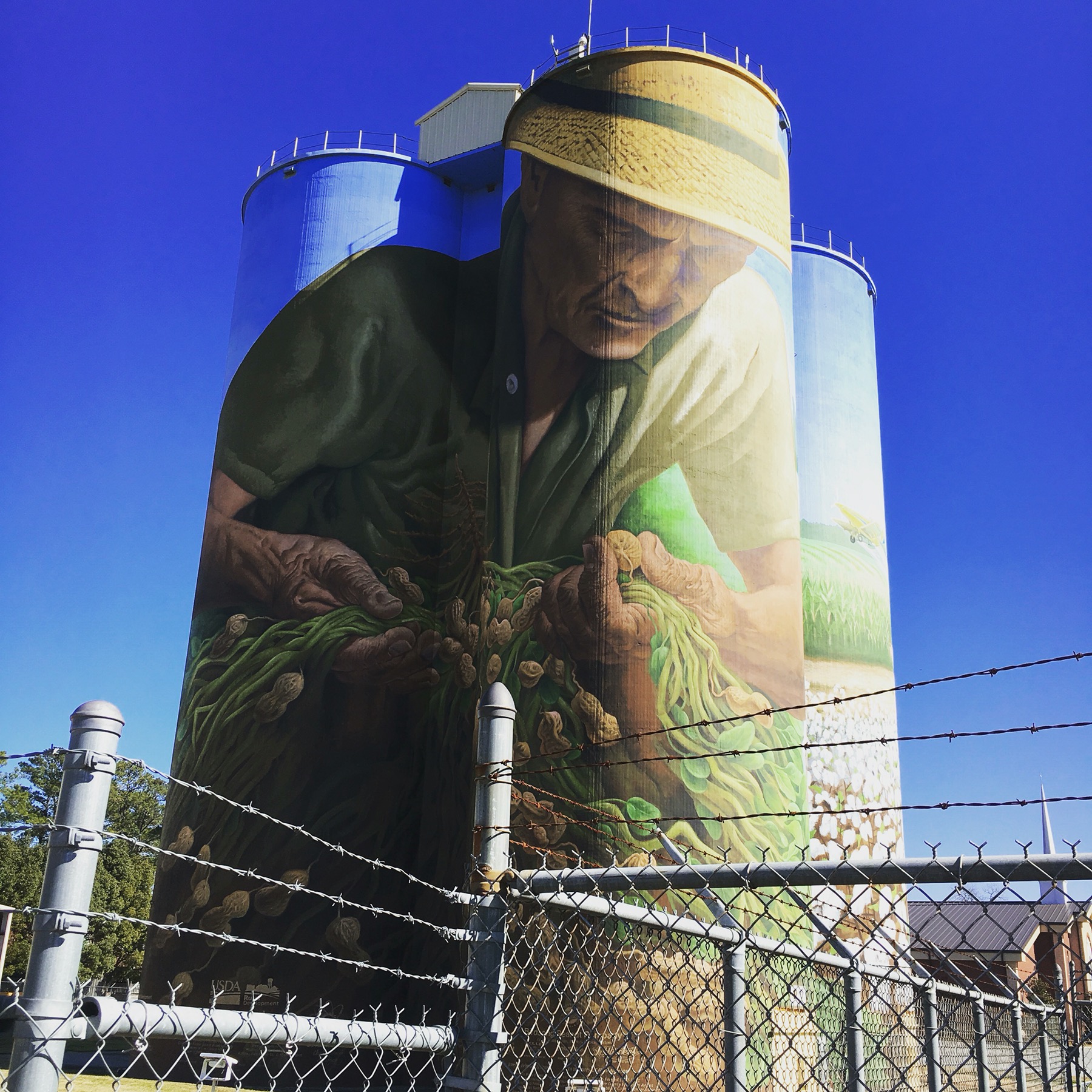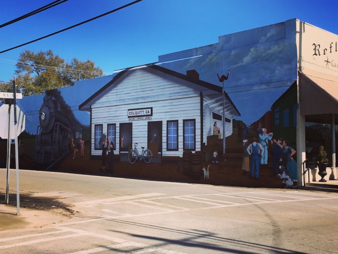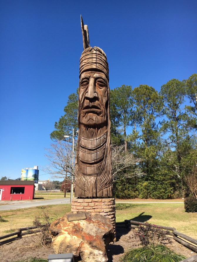 One hour in the other direction from Tallahassee, our next stop, Colquitt, Georgia. On Sunday the only business open in the town is the Tarrer Inn, open for buffet brunch. We had brunch. This town is filled with many murals, a large Native American head carved out of a single log and a play titled Swamp Gravy.