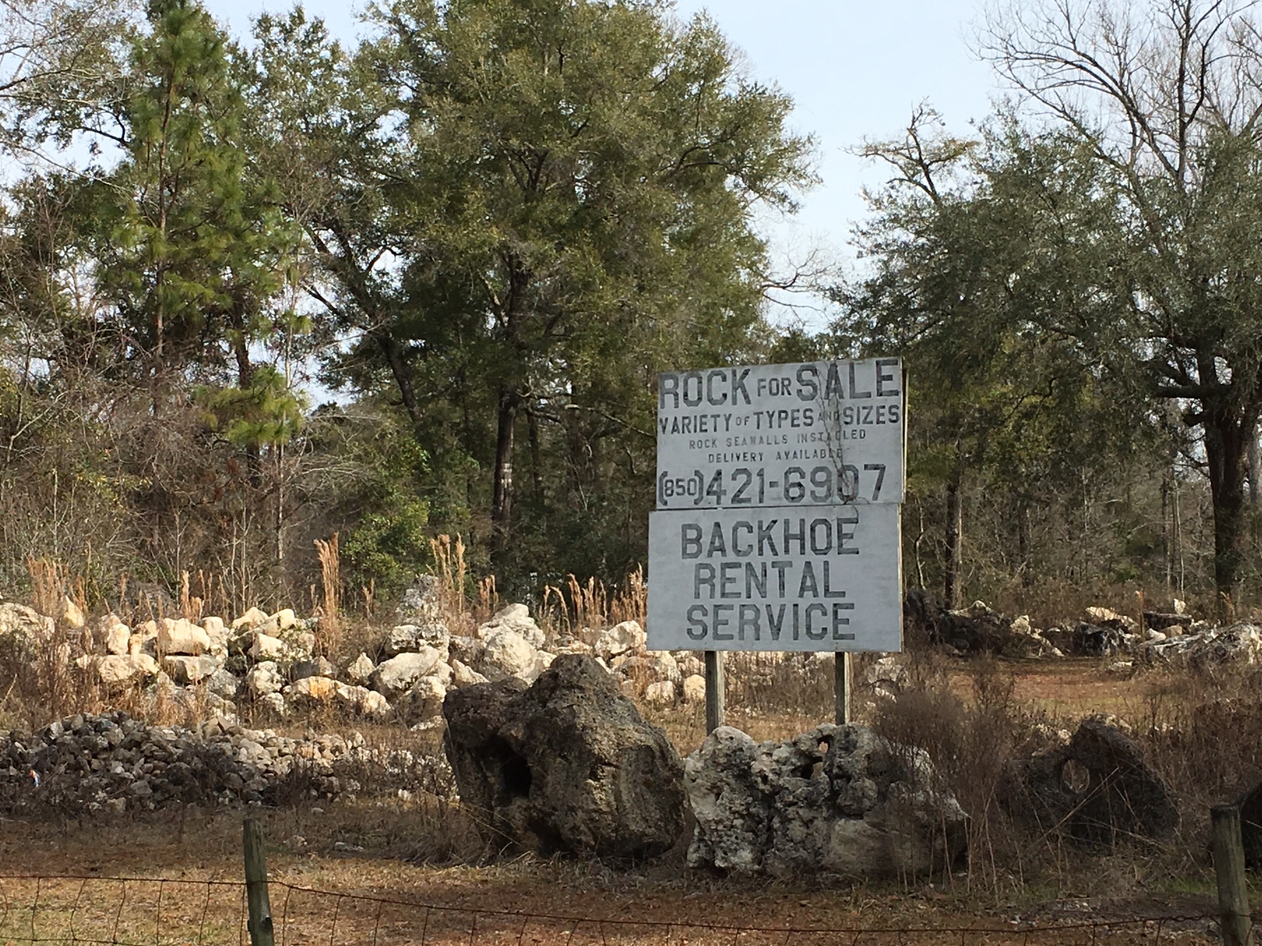 The temperature for the first time in a few days had gone above 50 degrees before 9:00am; the motorcycle called. The ride to the St. Marks Wildlife Refuge paralleled our previous bike rides for about 15 miles. Before we veered left into the Refuge, we came across some rocks for sale.
