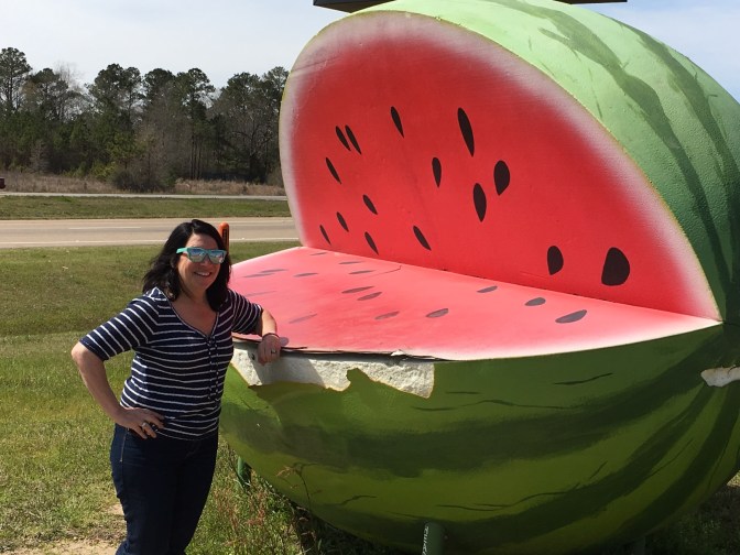 Feeling guilty after our morning donuts, we stopped at a fruit stand. Mostly because of the giant watermelon beckoning us. Not only was there no watermelon, there was no fruit.