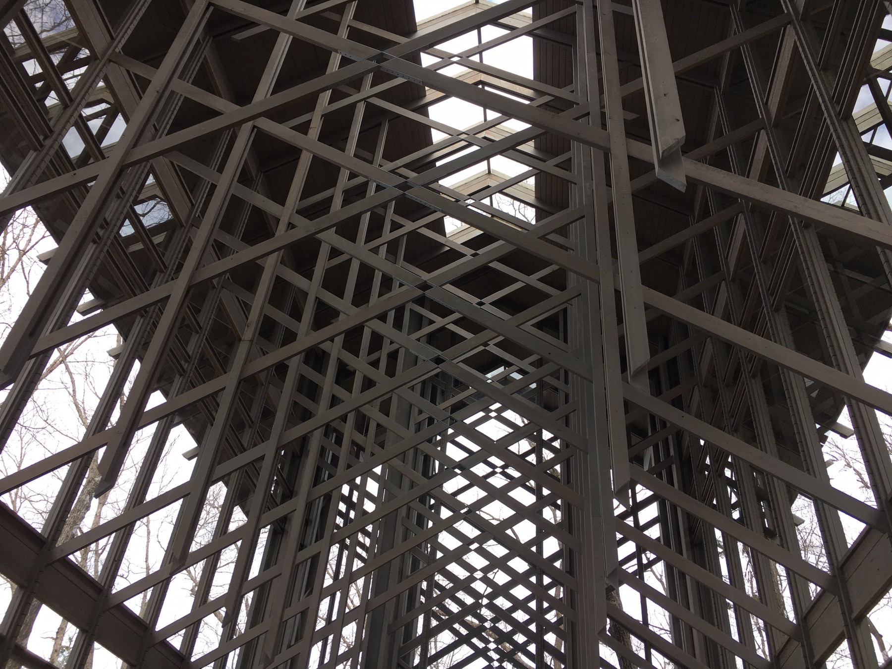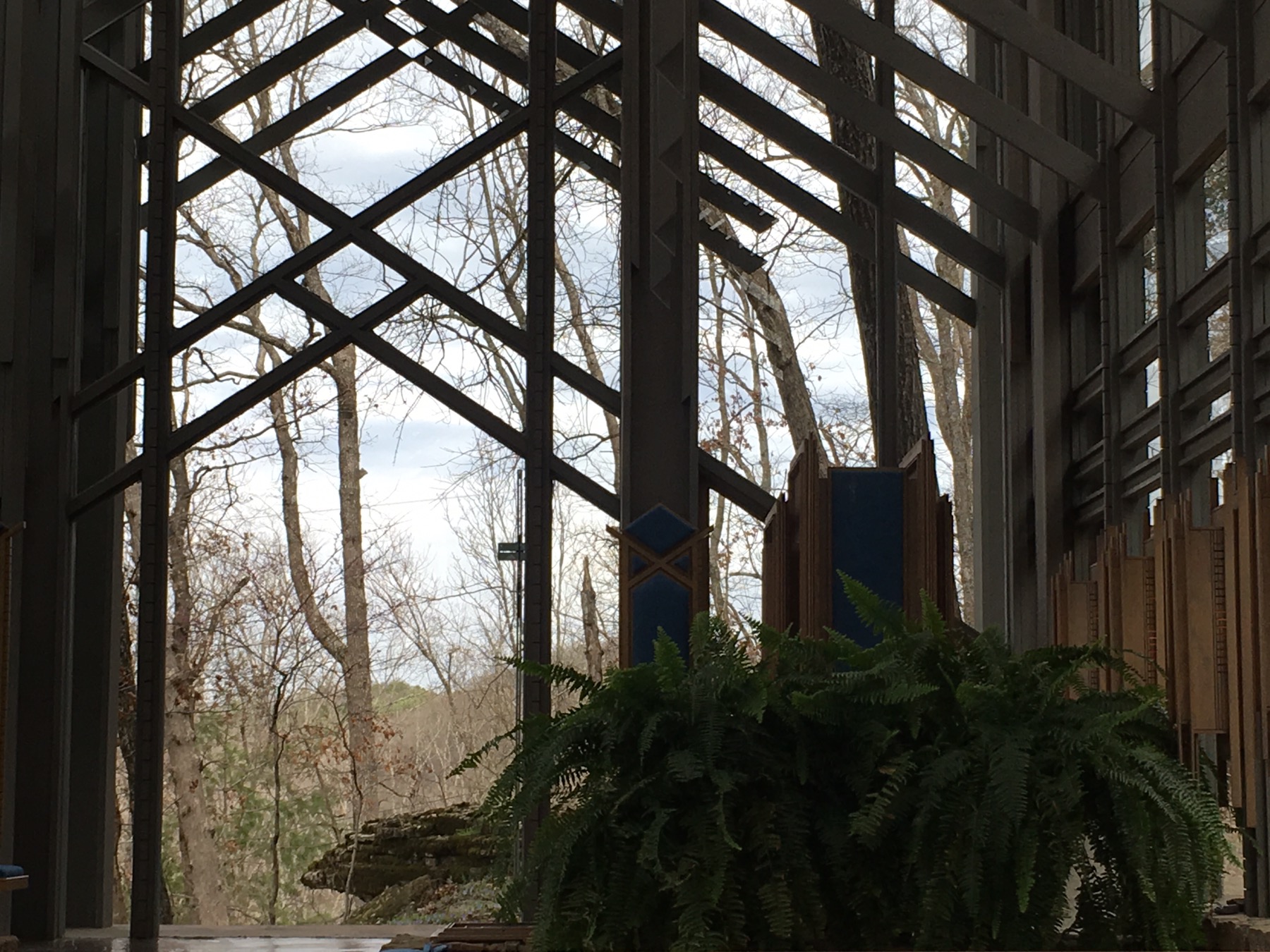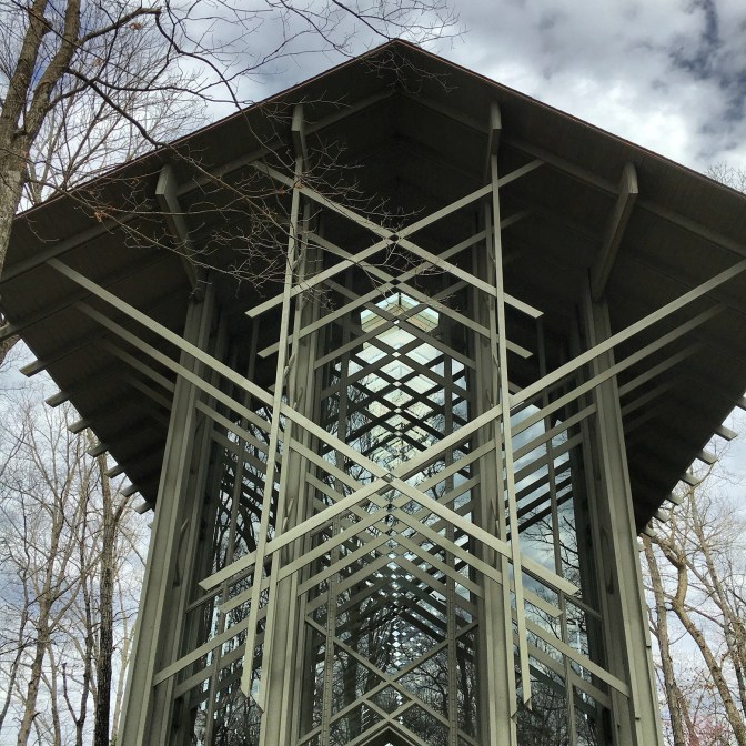 I do like the town’s unofficial motto “where misfits fit.” In the hillside just past the town center is the Thorncrown Chapel. It was completed in 1980 by E. Fay Jones. It blends with the trees and brings the outside in.