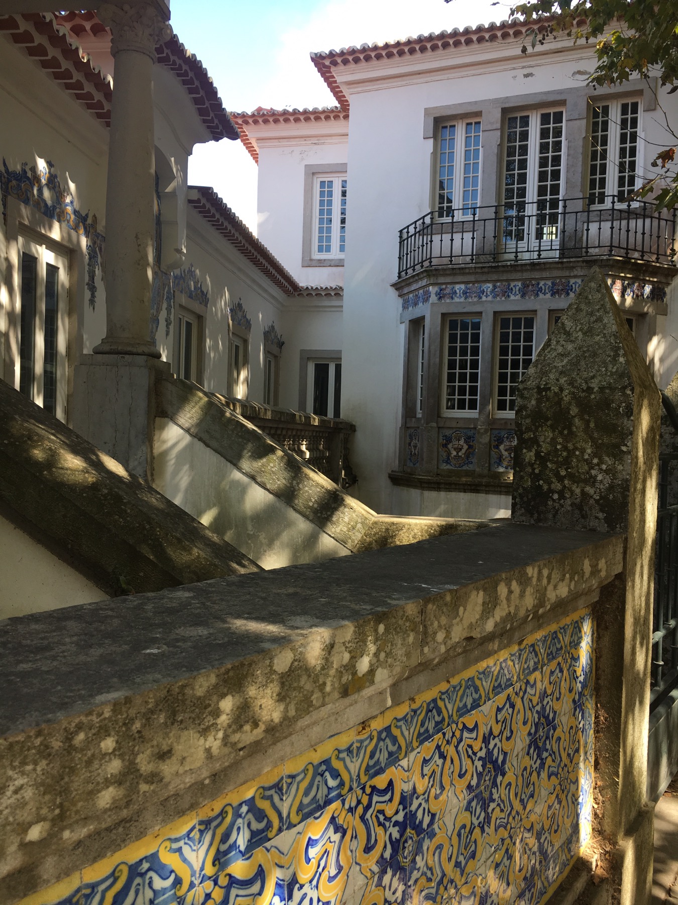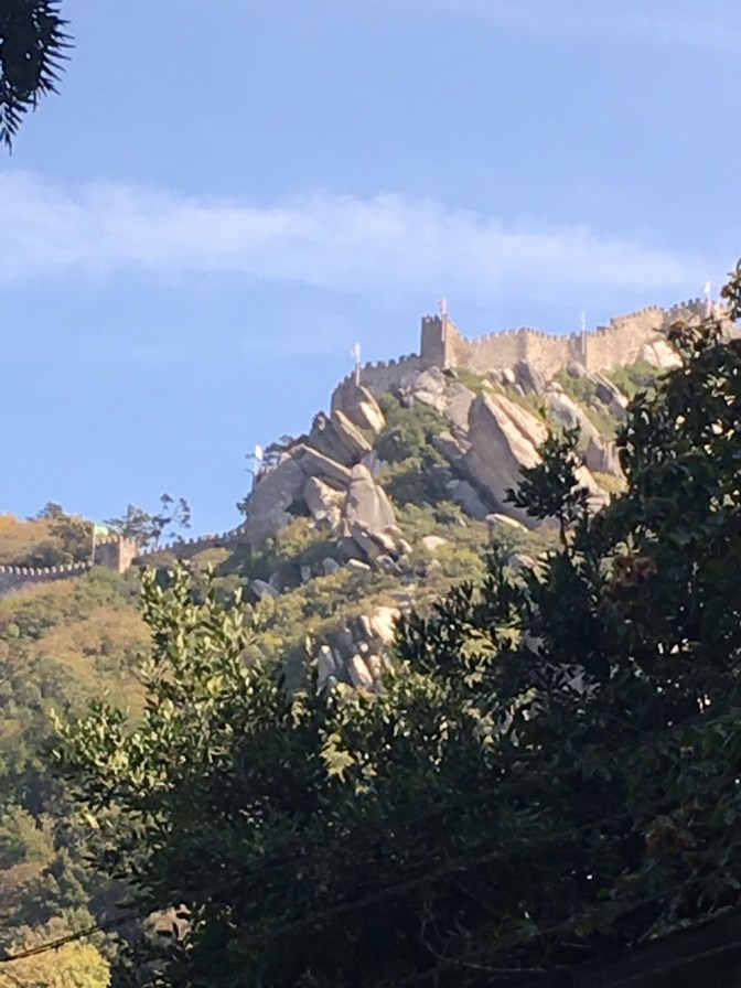 We even passed several arrows to guide our way. When we reached the Peña Palace and the Castle of the Moors we began a steep descent into Sintra with hairpin switchbacks. It was white knuckle with giant tour buses coming toward us. We successfully made it to our guesthouse with no mishaps. Once again we were happy with the lodging.