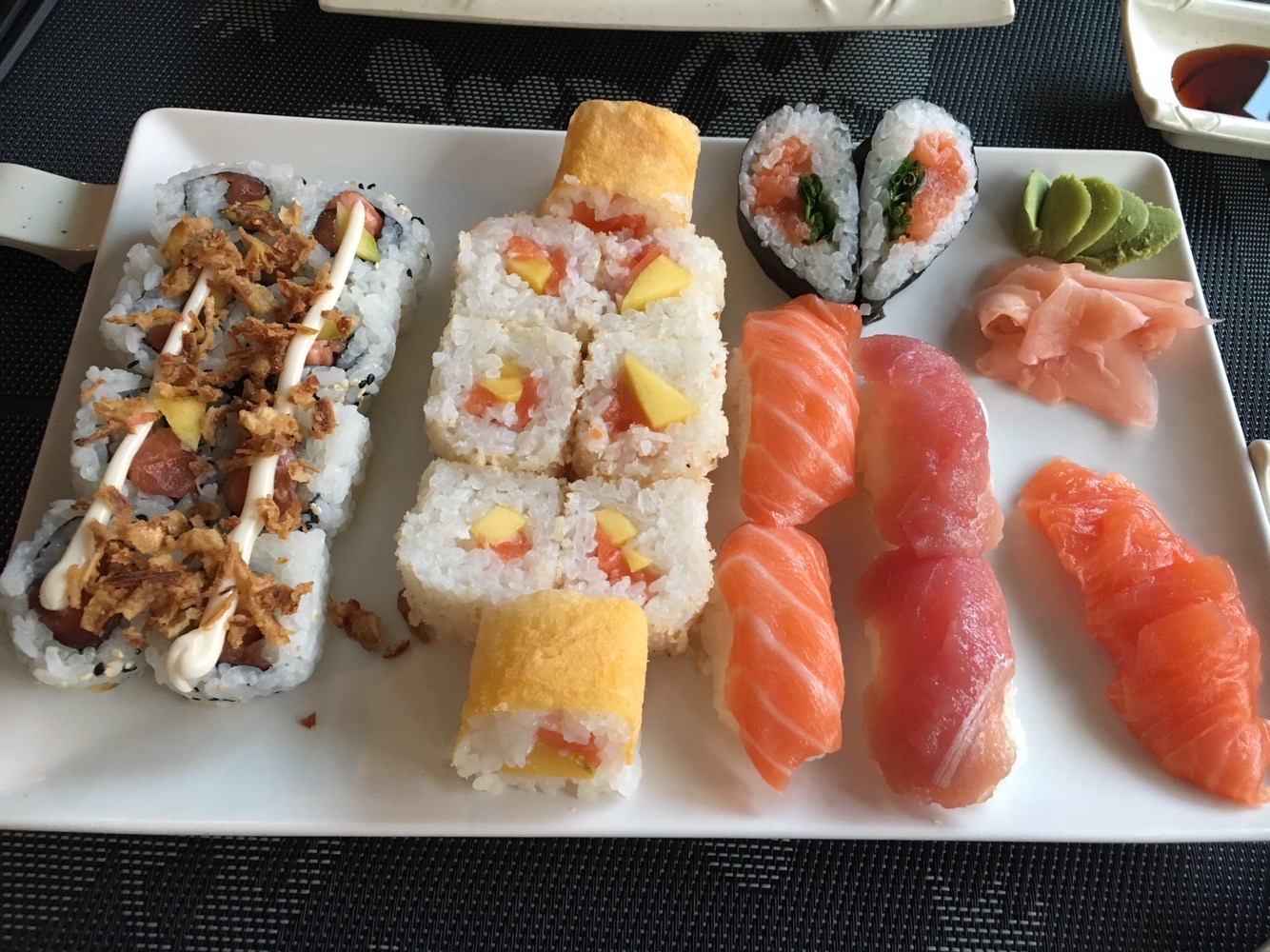 Dinner was delicious sushi. Instead of avocado they used mango in the rolls and it was perfect.