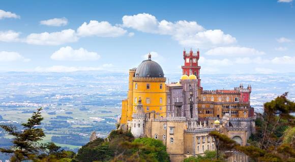 The Peña Palace (Palacio Nacional da Peña) is gigantic with brightly covered walls and a storybook feel. It is a national monument and is an amazing example of 19th century Portuguese Romanticism. The surrounding park is filled with historic gardens and is part of a landscape transformation project.