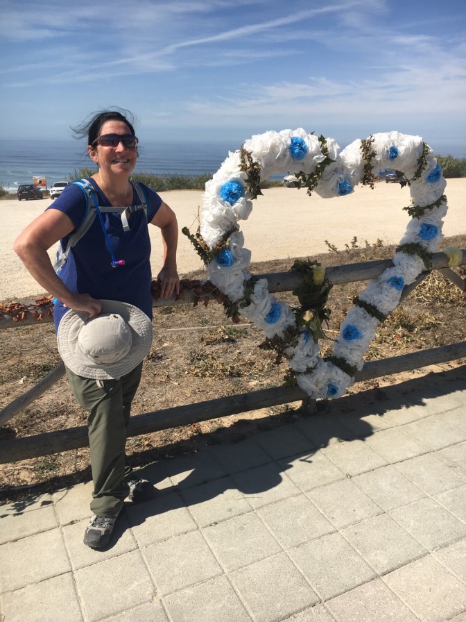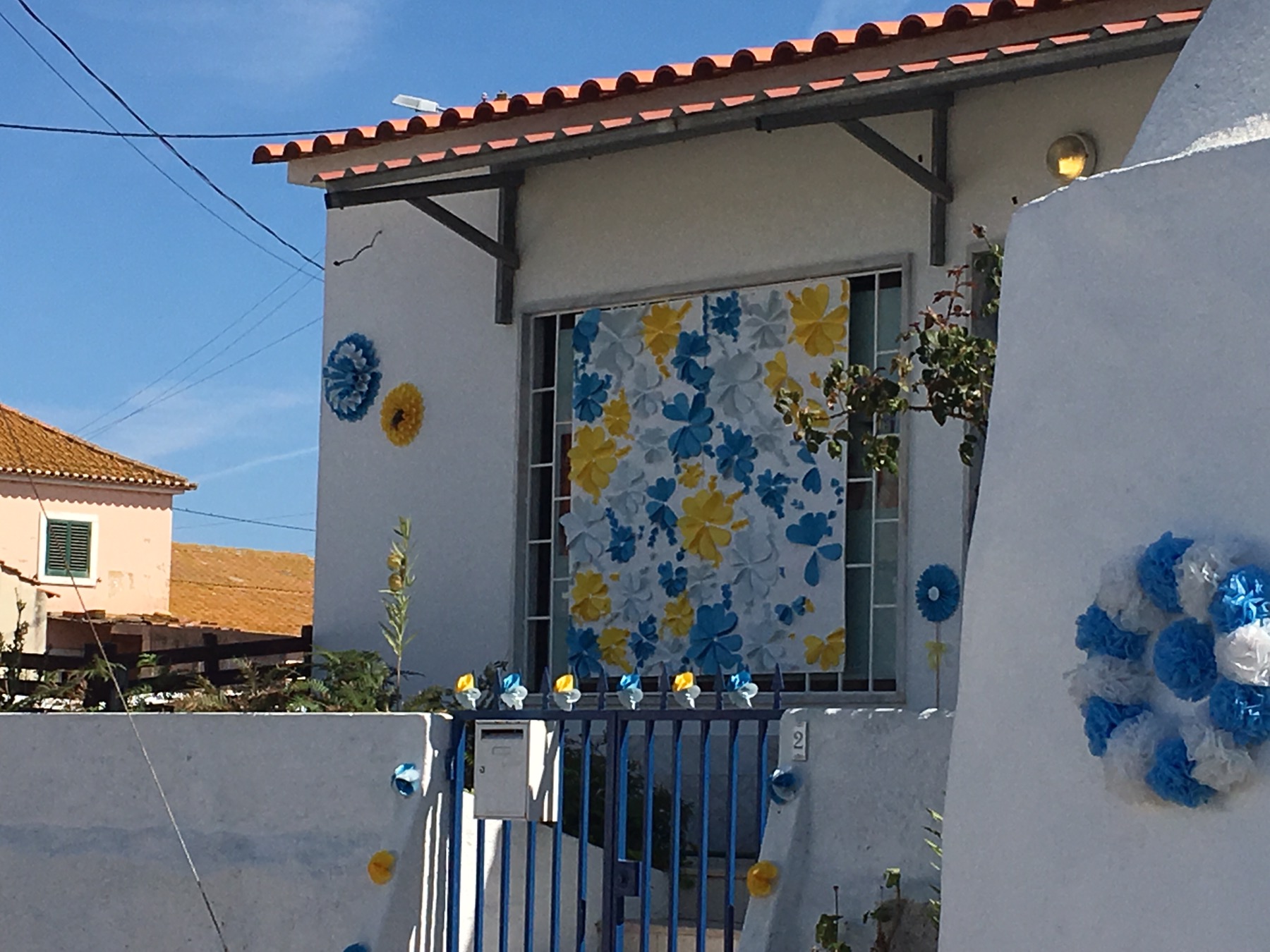 There is a festival for the Nossa Senhora de Nazare over the next few days and many towns and homes along our route decorated with blue and white flowers.