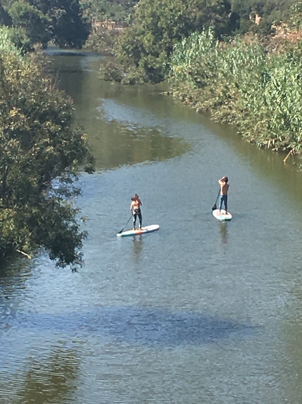 We crossed a small river and watched a couple SUP (Stand Up Paddle)