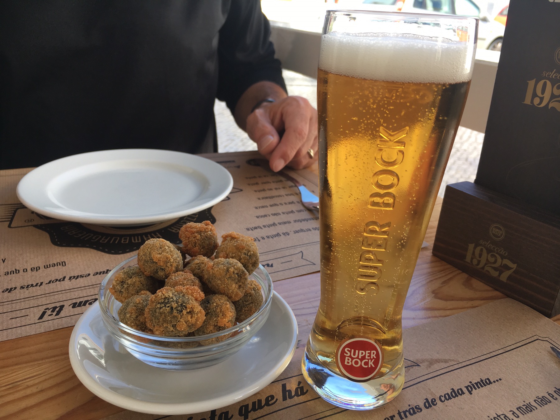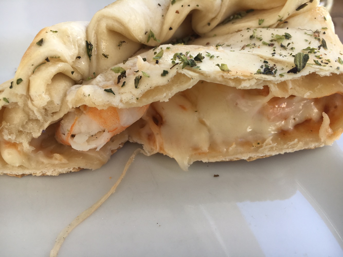 Wandering around town we stopped for breaded olives, a shrimp and pineapple calzone, and beer. What a life!