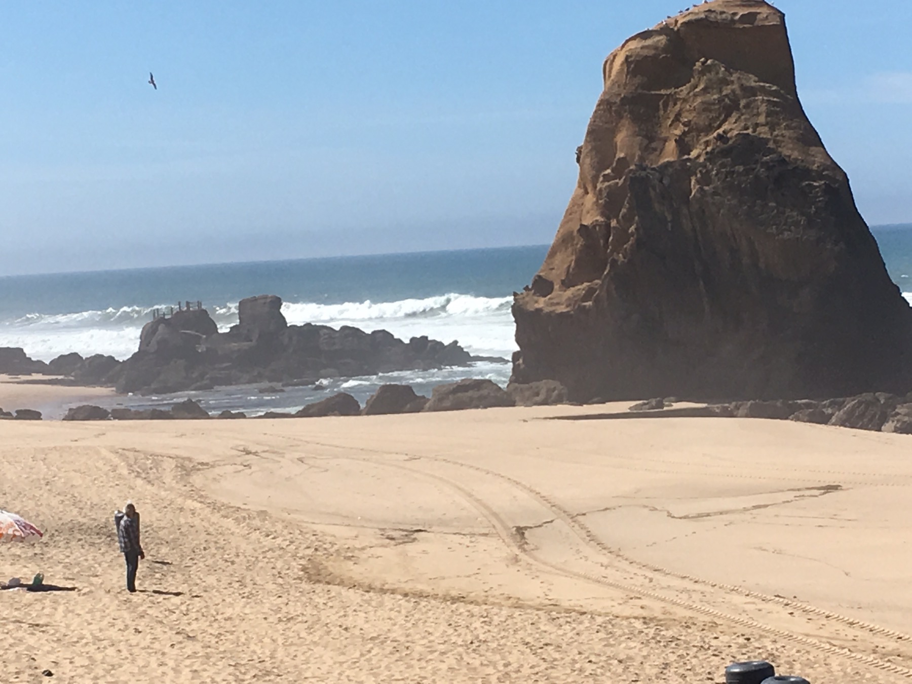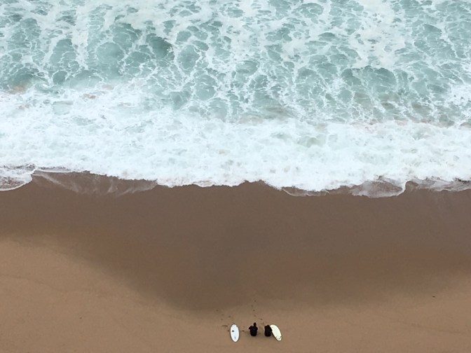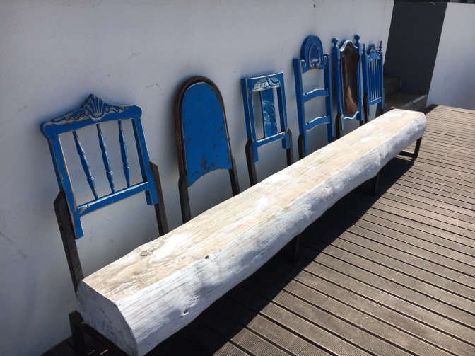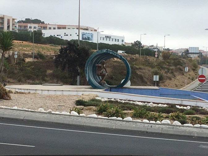 We checked in, and went to explore the town. It is a much smaller beach town, but has a much larger beach than Ericeira. Many shops are closed for the season. The beach is beautiful with boulders, interesting benches and boardwalks.