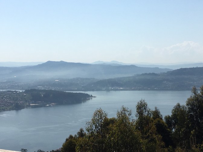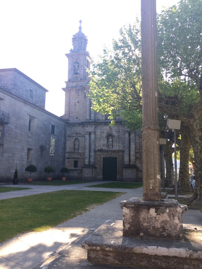 We left Pontevedra to follow the Variante Espiritual. We followed directions from the hotel staff which put us over a bridge with no Camino arrows. After asking a father walking his children to school, we got a new set of directions to put us back on course. All worked out fine. We arrived at the Monestario de Poio via our own circuitous route.