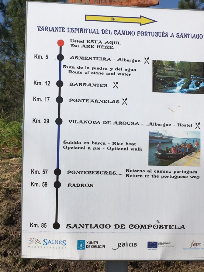 The Variant Espiritual is a relatively new route, about six years old. It connects places that were historically related to the Camino. It is based on the pilgrimage taken by Padre Sarmiento in 1745 who was a Spanish scholar. Tradition says that in 44 CE a ship carrying the body of St. James crossed the estuary of Arousa. His remains were transported down the Ulla River until they arrived at Iria Flavia which is now the village of Padrón, the last stopping point on the Camino Portuguese before Santiago de Compostela. This is where the Spiritual Variant reconnects with the main branch of the Caminho Portuguese.