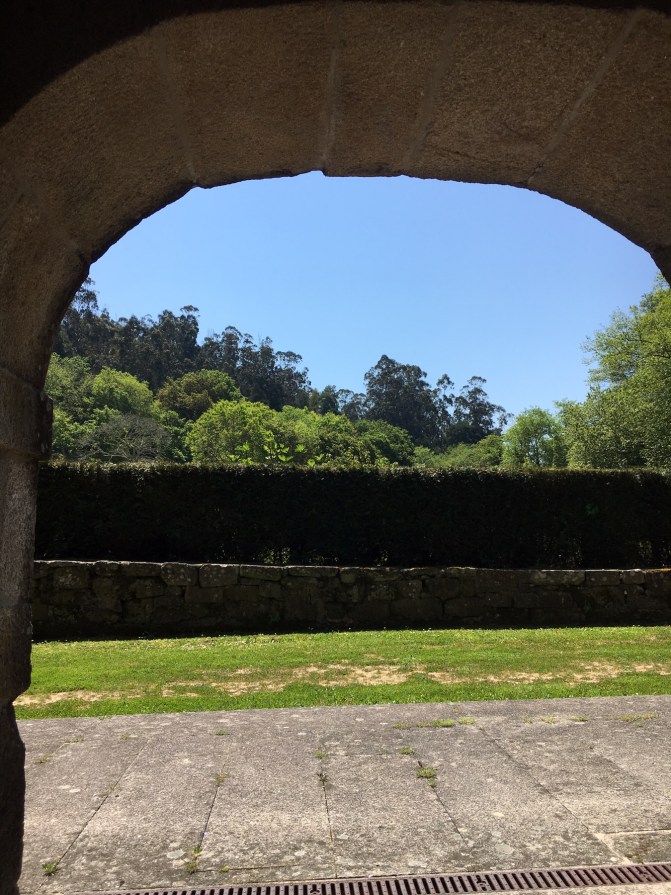 Mosterio de Armenteira, a Cistercian monastery founded in the 12th century. There are now only eight nuns at the monastery that is annexed to a gorgeous, yet very simple Gothic cathedral. The nuns are a lovely group who support themselves by making soaps. The grounds include a peaceful garden and several sitting areas. They have a daily pilgrim’s vesper service at 7:00pm. This was our first pilgrim service and it was fascinating. After the hymns sung in Spanish and a few words spoken by several of the nuns, all pilgrims were called forward. We were read a special passage about our pilgrimage to Santiago. We were wishes a safe journey and then we were blessed individually by a monk. A first for us.