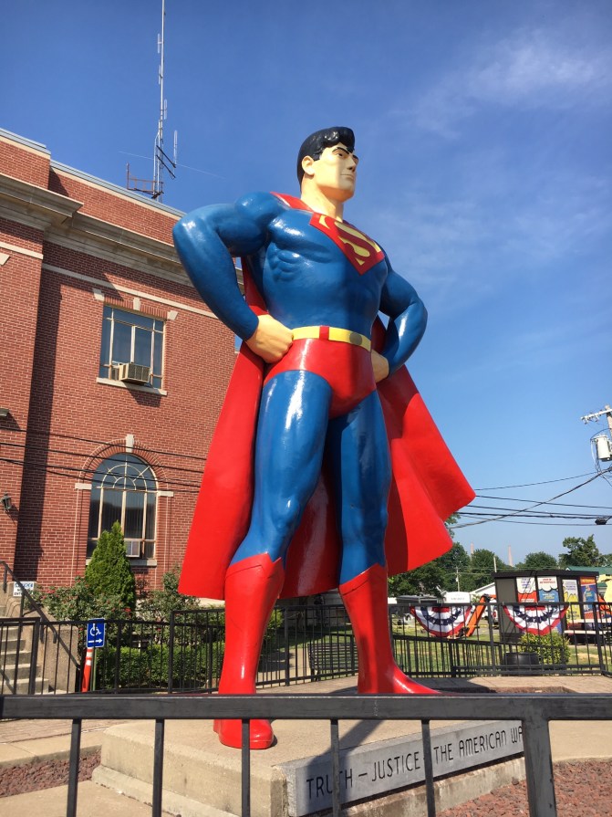 At the very bottom tip of Illinois along the Ohio River and the border of Kentucky is a small town with a big name. Metropolis has embraced (as it should) Superman. The official ‘Home of Superman’ was authorized by D.C. Comics in 1972. Since then, Metropolis has become a Superman fan Mecca. There is a statue, a museum, the Daily Planet car and even a phone booth. It is a fun place to stop and take pictures. Too bad there is no terrific diner or coffee shop to meet Lois Lane or Jimmy Olsen and get the latest scoop for the Daily Planet.