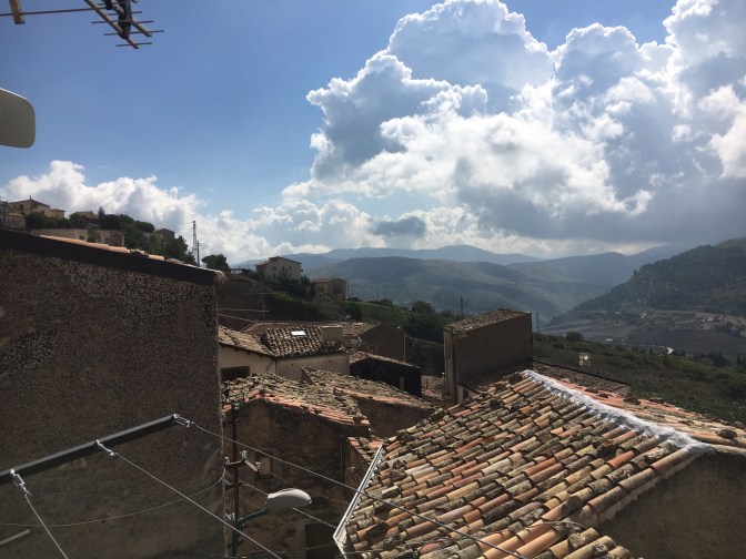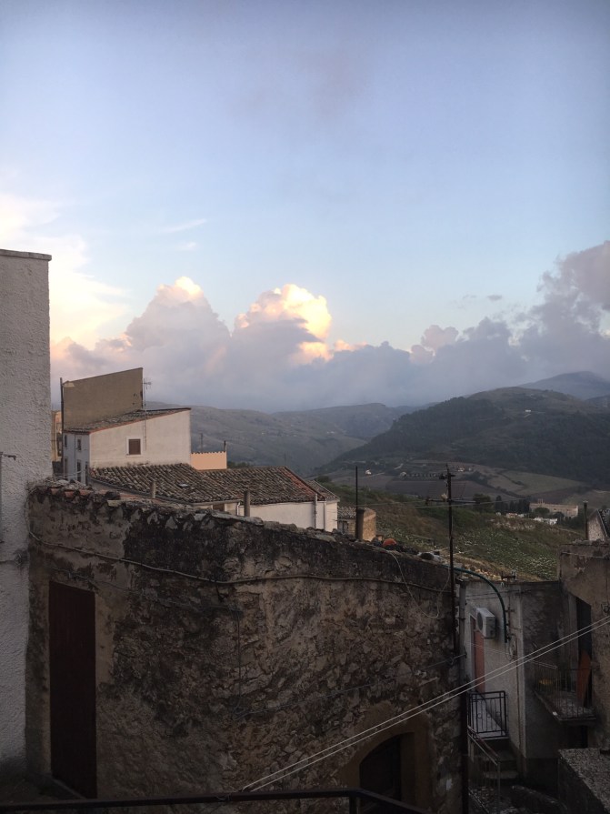Reviewing the several mountain climbs from Corleone to Prizzi, with no place along the way to stop for a coffee or water, we opted to ride to Prizzi and take a mini-break. Along our ride, we passed more transhumance of goats, sheep and cows moving from stunning mountain tops to lower fields.