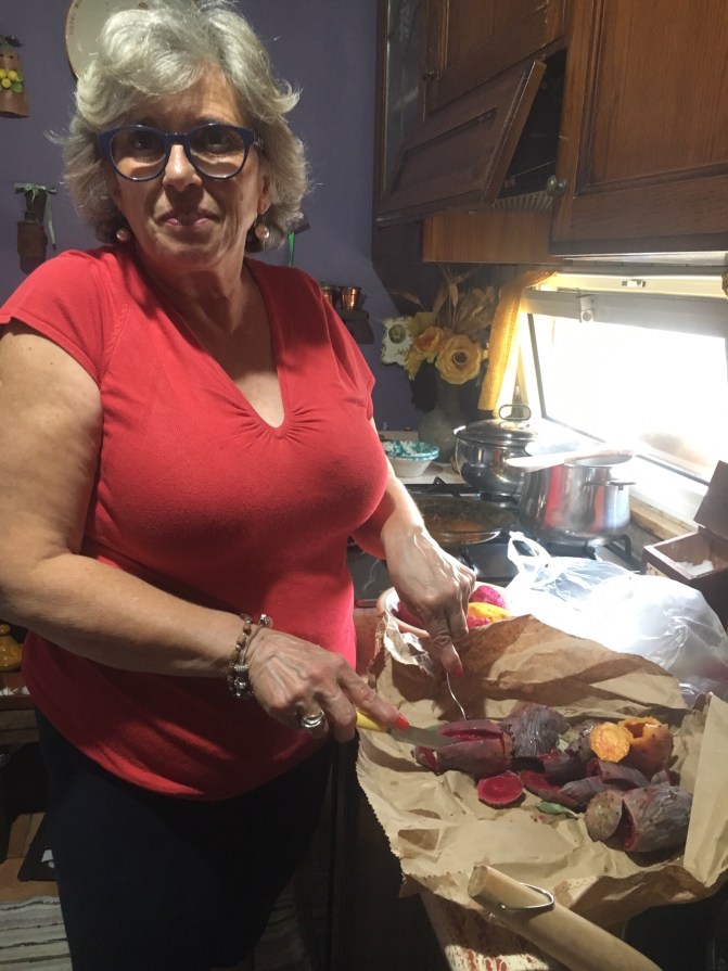 After exploring the never ending stairs and streets, Nicoletta invited us to a delicious homemade lunch. We began with fried eggplant with mint and garlic and a cold green beans and potatoes salad, followed by Pasta ala Norma (pasta with eggplant and fresh basil in red sauce). We had wine and great conversation thanks to Google Translate! For dessert, we tried prickly pear (ficodindia). This was a first for both of us; it is sweet and filled with edible seeds.