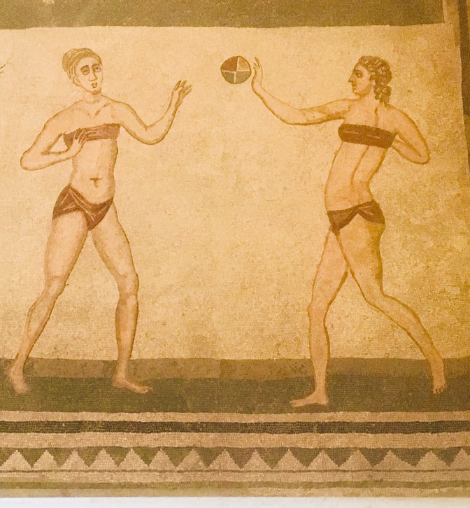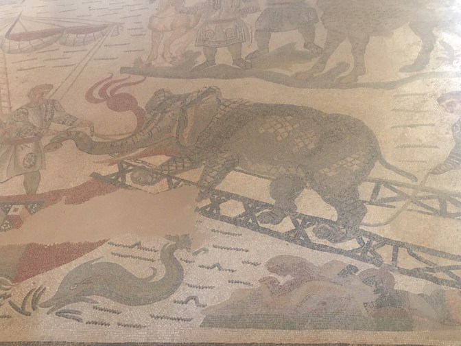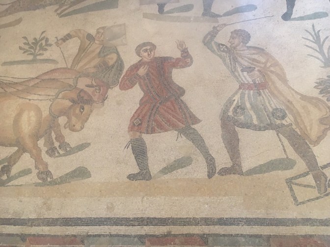 An early departure from Agrigento was necessary to pack in a day of mosaic and ceramic wonder. We drove past fields of almond trees, artichoke, honeydew melon and prickly pears on our way to the Villa Romana del Casale.
