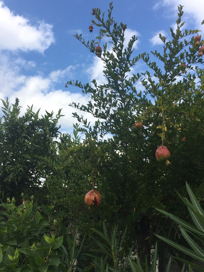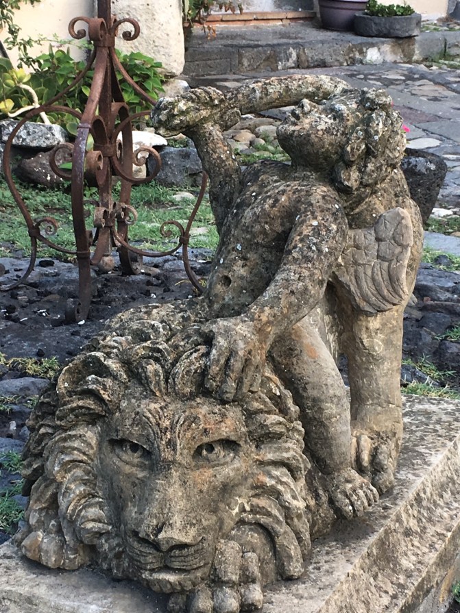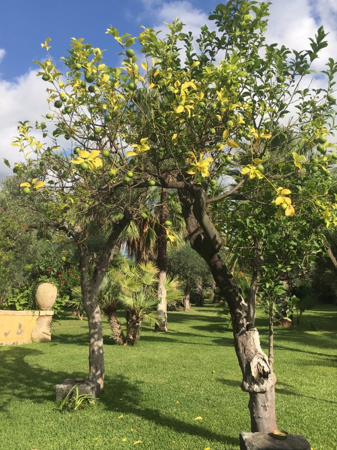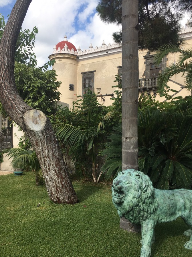 As we unwind and immerse ourselves at the Castello, the beautiful foliage has captured our attention. Between the buildings with carvings in volcanic stones we have seen lemon, orange and olive trees, ficodindia, pomegranates and apples. Pines, palm trees, bougainvillea, oleander and other flowering plants all so lush it seems very tropical. With a few crazy-colorful lizards, too.