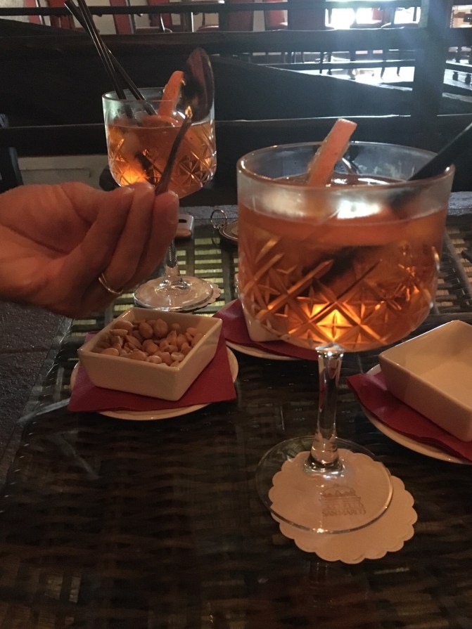 We have begun the pre-wedding celebration of our friends with them all over town. We tried three Sicilian cocktails; all delicious.