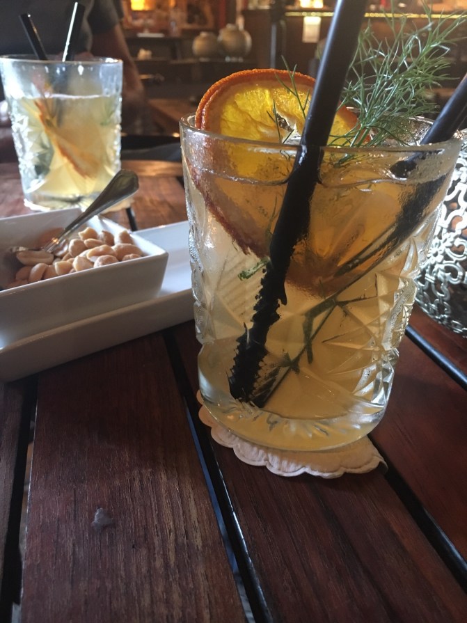Amara Amaro (a blood orange liqueur) makes the Sicilian version of an Aperol Spritz. A Lumia, which is limoncello, gin and Prosecco and Ficu R innia which is a fig liqueur with white wine, cinnamon liqueur and some Amara, too. They all pack a punch and none are as sweet as they sound. Thankfully and deliciously, they serve each drink with peanuts, olives, fresh fruit, cheese and honey.
