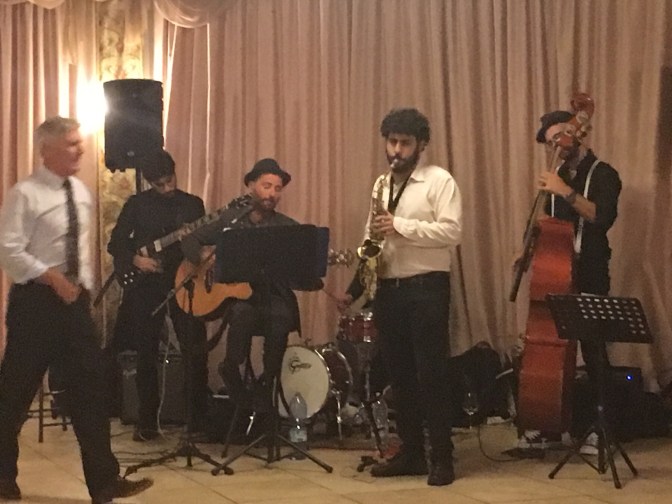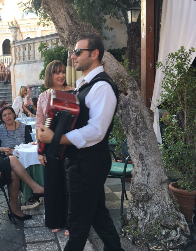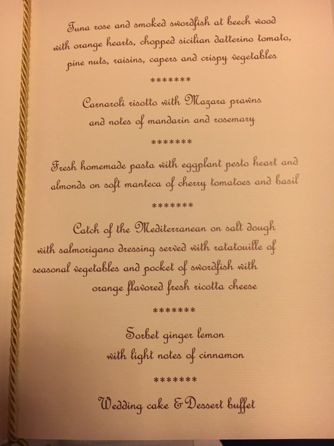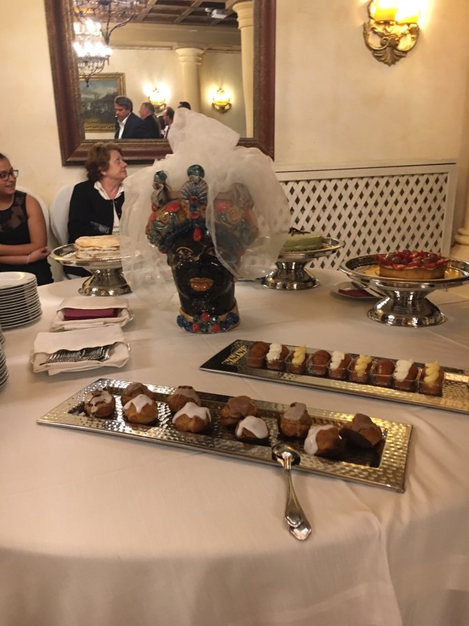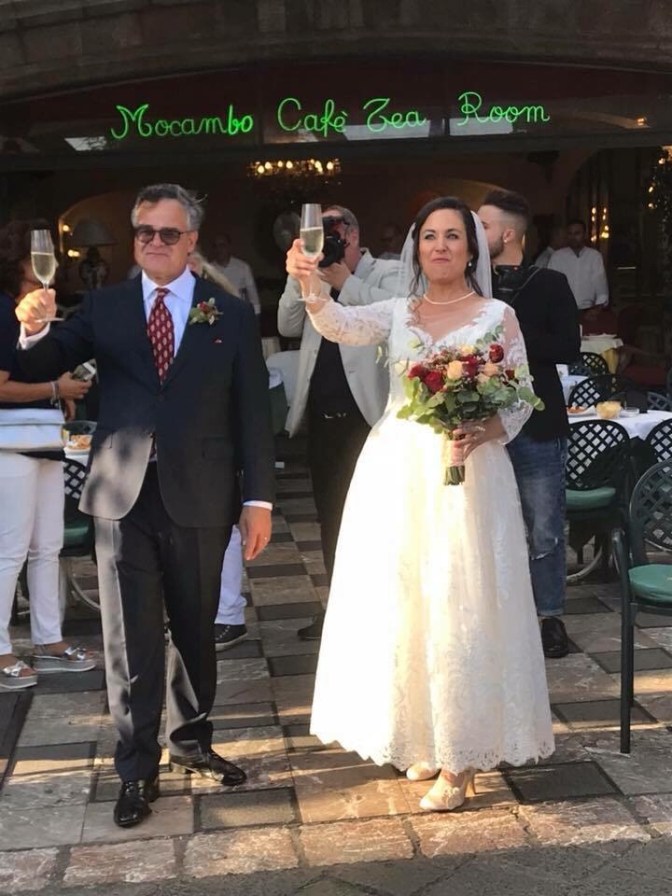 Weddings are always a time of joy and celebration; this one was extraordinary on many levels. The amount of love expressed by guests for the bride and groom was only surpassed by the special love between the magical couple. Beginning with the service, followed by a stroll to the plaza in the center of Taormina, accompanied by a folk band and a vintage Alfa Romeo, was a fitting way to begin the festivities.The reception was held at the stunning Castello San Marco. The red carpet at the entry led us to an aperitivo spread that set the tone for the night.Plato said of Sicily ‘Sicilians build things like they will live forever and eat like they will die tomorrow.’ These words ring true to this day. We experienced an outrageously delicious five-course meal (not including the incredible dessert spread along with wedding cake). The band played on, family and friends all swelled with happiness for this special couple and this new beginning.