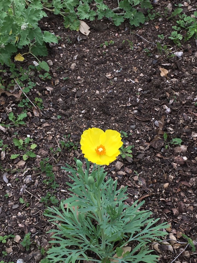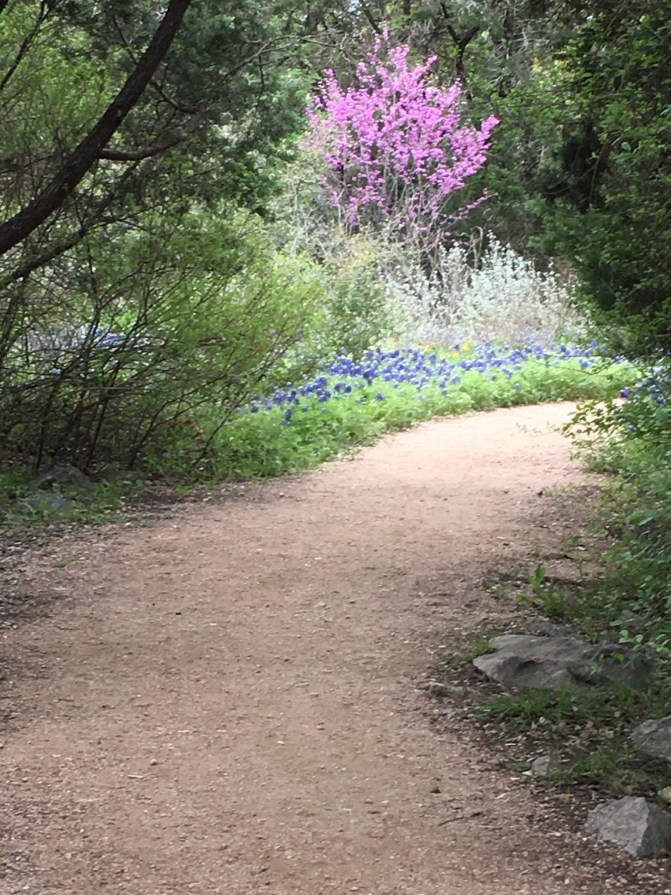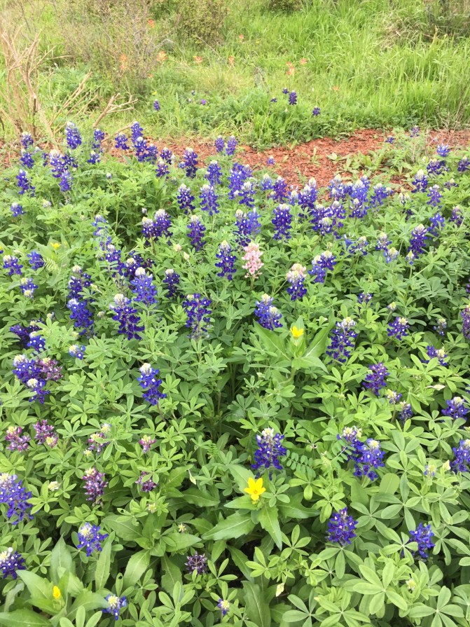 Within the city limits of Austin, but about ten miles from the city center is the Lady Bird Johnson Wildflower Center. The grounds are amazing. Spring wildflower blooming has begun and it is easy to get caught up in the beautiful, intense colors. We were treated to the great horned owl, Athena, peaking out of her nest as we entered the park. She is patiently waiting for her owlets to hatch. You can make out her ears at the bottom behind the green plant.
