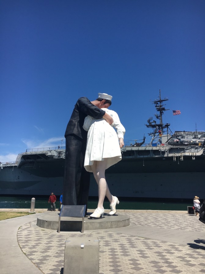 More family fun in San Diego, we walked around the harbor area stopping at the Midway aircraft carrier where there is a Bob Hope statue park, a gigantic replica statue of the kissing sailor and nurse from Times Square and of course, the museum on The Midway. More than forty years ago, the Midway took on hundreds of refugees from Vietnam and brought them to safety and a new home in the US.