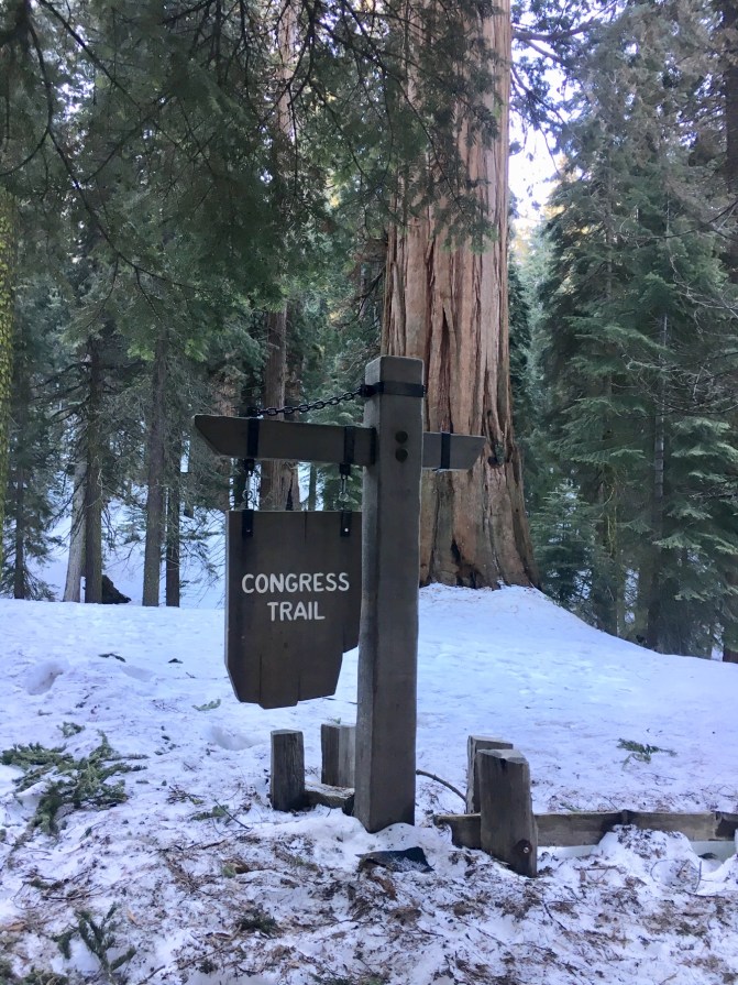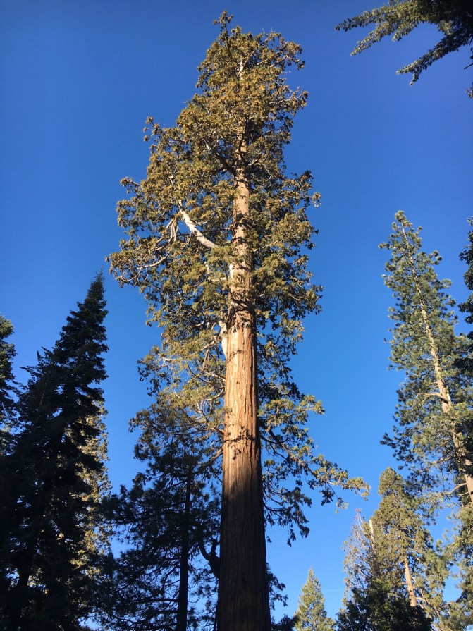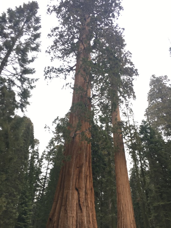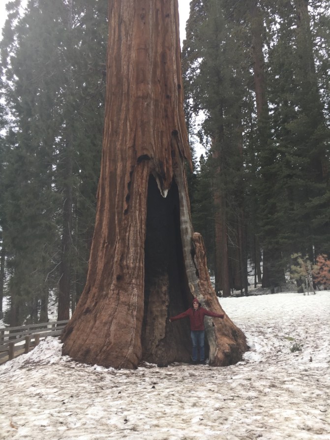 The foothills of Sequoia National Park are approximately 2,000 feet in altitude. We looked up at snow capped mountains while enjoying temperatures in the mid-70s and plenty of beautiful spring flowers and blooming trees. The rushing river was a sign that the spring melt had begun. A long and winding road brought us up to the Giant Forest at 7,000 feet. Spring dissolved into winter with temperatures in the low 30s and five-plus feet of packed snow. The giant sequoias dwarfed everything including the snowpacks. Many of the hikes we were interested in were closed, including the famous tunnel tree and Moro Rock. We were able to slip and slide around the giant tree loop and Congress trail. This led us to the largest living thing on the planet earth…General Sherman. This amazing sequoia is the world’s largest tree, measured by volume. It stands 275 feet tall, and is over 36 feet in diameter at the base. This is equivalent to a 26-story building, and the width of it’s base is about the same as a city street. Giant Sequoia grow very quickly and they have a life expectancy of 2,700 years. This forest of sequoias are mixed in with other large trees which make you feel like you have been shrunken and adds an extra appreciation to the size of these giant trees.