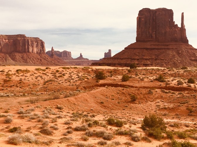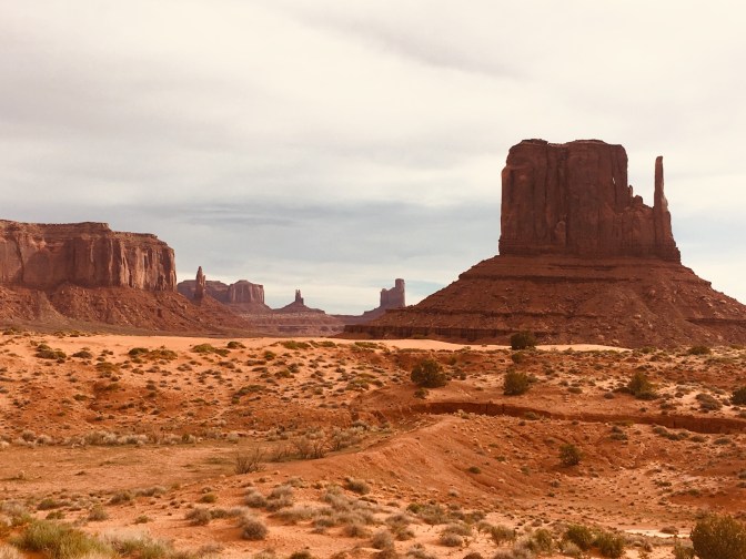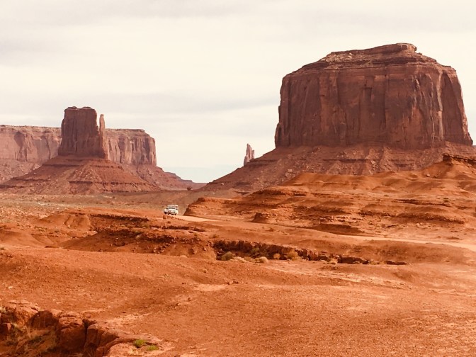 There is a 17 mile dirt road scenic drive that has 11 marked view points to take in the amazing landscape. After negotiating the steep and rocky first half mile down Mitchell Mesa to the valley, the road levels out but we were mindful of the rocky terrain. We saw both East and West Mittens, Merrick Butte, the Three Sisters (which I call W) and all the rest as we enjoyed our self guided tour. There are Navajo guided tours available for a deeper experience which will bring you to restricted areas and also let you walk closer to monuments.