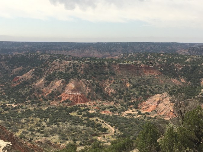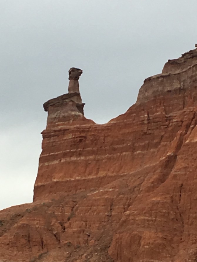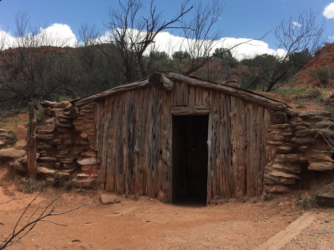 Entering the panhandle of Texas, there is an unbroken horizon. The prairies and plains are dotted with cattle, a few crops and scattered windmills. The town of Canyon changes all that. Palo Duro State Park is the second largest canyon in the US. It is extra-surprising considering it is surrounded by flat plains. The canyon is 120 miles long and between 600 and 800 feet deep. Although the canyon is less than half the size of the Grand Canyon, it still offers great opportunities for outdoor activities. The CCC developed the roads, trails, cabins and visitor center during the 1930s. It is filled with flora and fauna including mule deer, wild turkey, lizards prickly pear, mesquite and more. The park is named for the hard wood of the Rocky Mountain Juniper (Palo Duro, ‘hard wood’).
