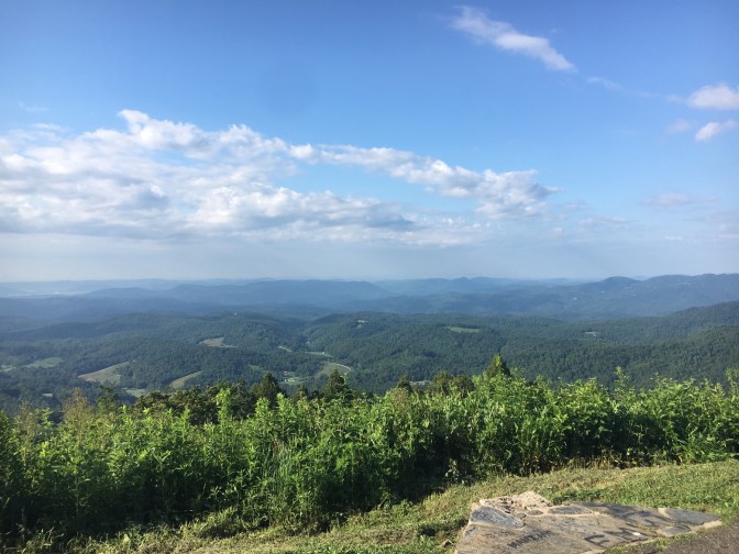 The Blue Ridge Parkway always provides incredible views both up close and on the horizon. Over a few short miles we experienced deer, wild turkeys and colorful butterflies. Rhododendrons towered over us and were in full bloom and the Smoky Mountains were amazing at every turn. We stopped at numerous overlooks and appreciated the spectacular beauty. We were lucky to spend the night at a friend’s home near Sparta with a view that made it hard to close the blinds and go to bed. We stopped at the Music Center and listened to some mountain music, and also visited the folk craft art center which is in the former mansion of the textile manufacturer Moses Cone, Flat Top Manor. Bikers, motorcyclists and runners all shared the winding road, the spectacular views and the great memories of the BRP.