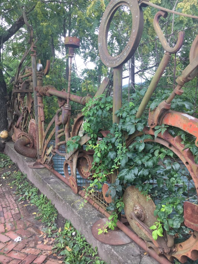 Snuggled in the foothills of the Smoky Mountains, Asheville has so much to see and enjoy including UNC, the Biltmore and its beautiful gardens and funky downtown. This trip, we concentrated on RAD (the River Arts District) and downtown. The amount of galleries by the tracks have grown dramatically since our last visit. Pottery, painting, sculpture, glass making, chair caning and basket weaving are all represented and the galleries and studios are so much fun to walk through and explore.