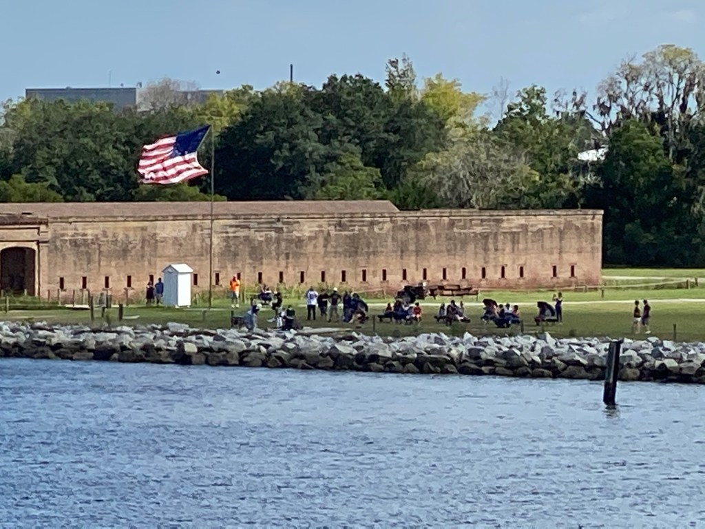 We learned a few new facts about the city’s history, we saw several cargo ships, dolphins and even a bald eagle on our sightseeing tour. Savannah was the sailing venue for the Atlanta Olympics (1996) and is also the fourth largest cargo port in the US. As we passed Fort Jackson, a brick fort dating back to the Civil War, we had the pleasure and unexpected surprise of a cannon firing beside the fort.