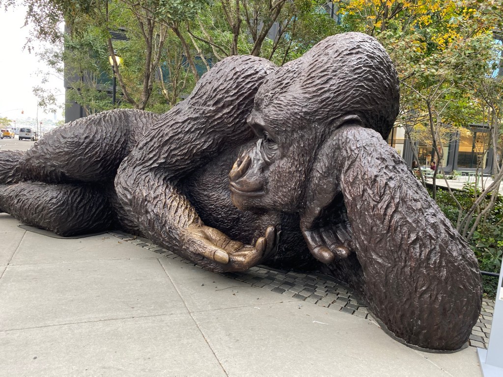 Outdoor public art, especially in the time of social distancing, is a great way to combine art, friends and exercise. At Hudson Yards, besides the opportunity to climb the vessel, there is a great statue of King Nyani, the largest bronze statue of a gorilla in the world…a gentle giant looking at the Vessel.