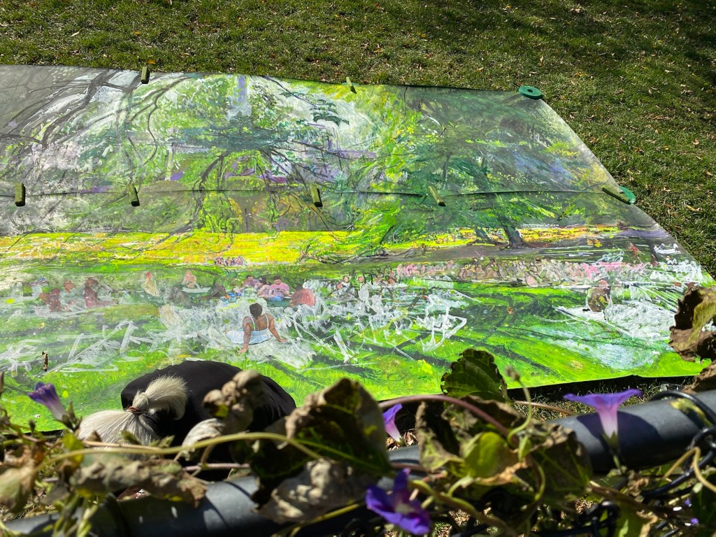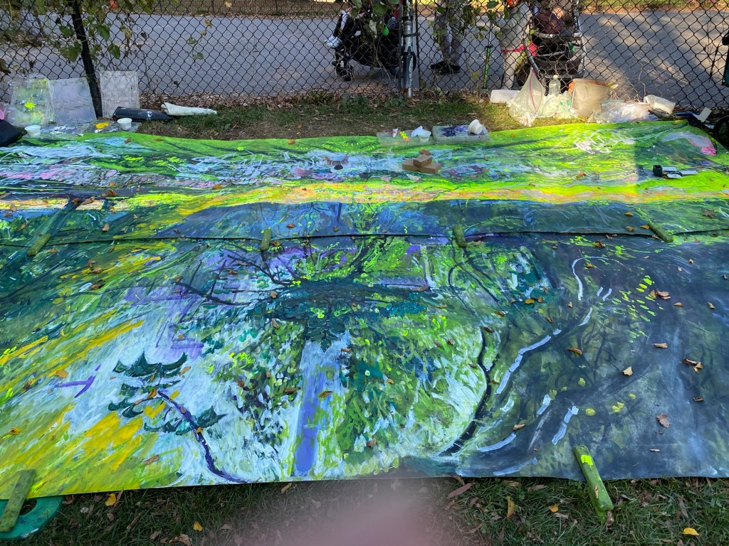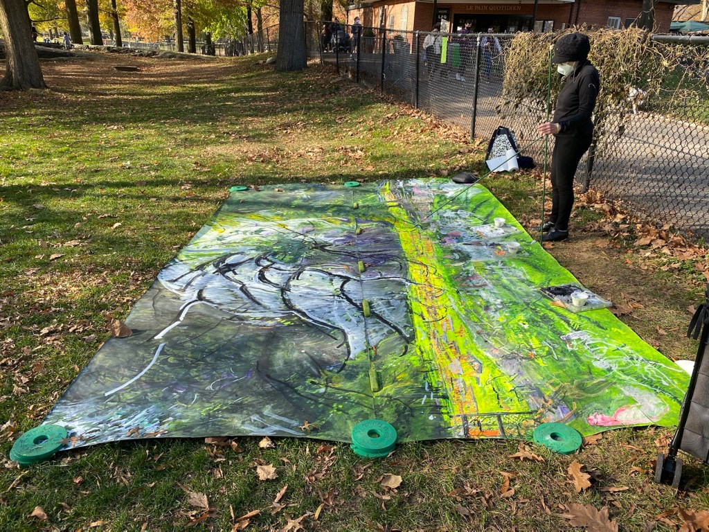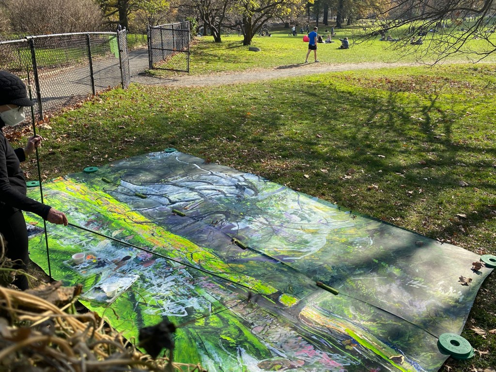 My peaceful park walks have also brought me by a woman in the Sheep Meadow who is working on a very large painting, often assisted by her son. I asked how long she has been working on this study and she told me more than twenty years. Maybe because the park is much emptier these days, or maybe I have not frequented that part or once again, because of the background music…another park treasure is revealed.