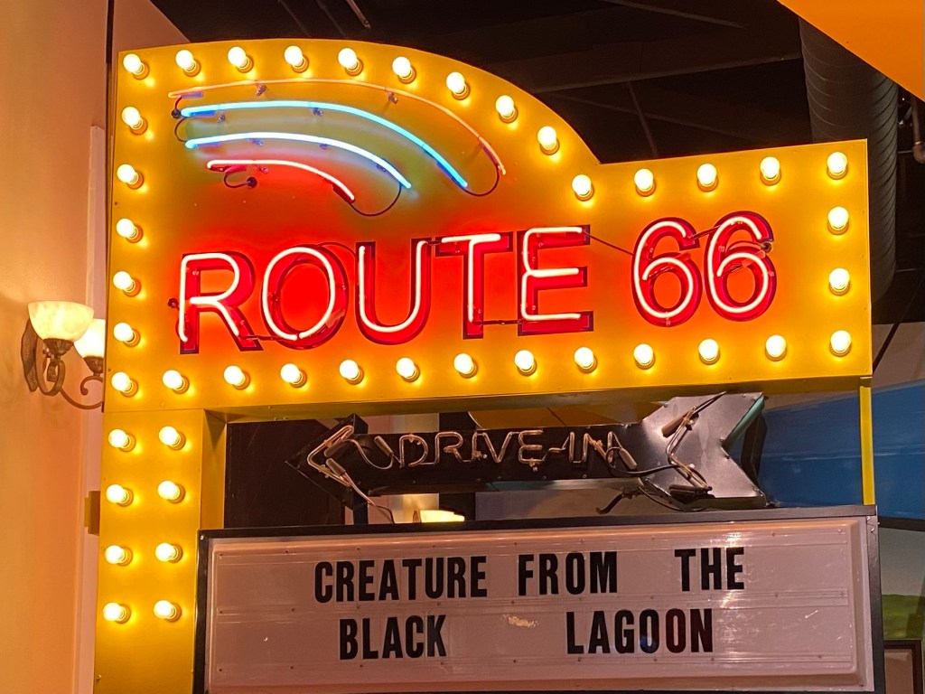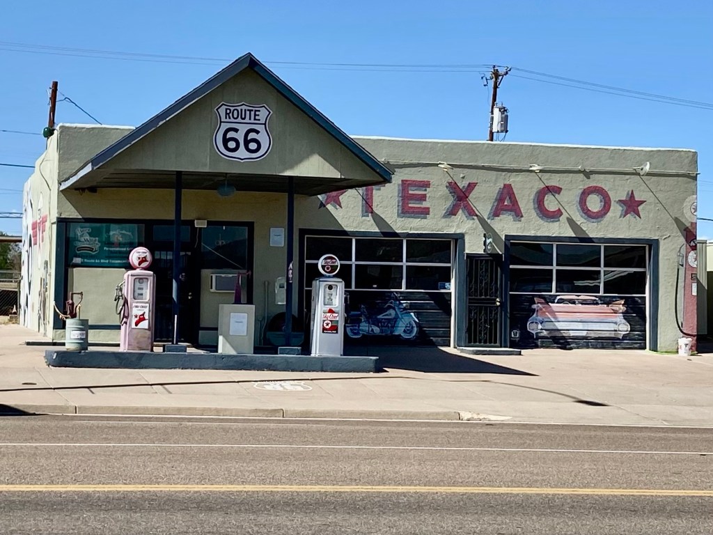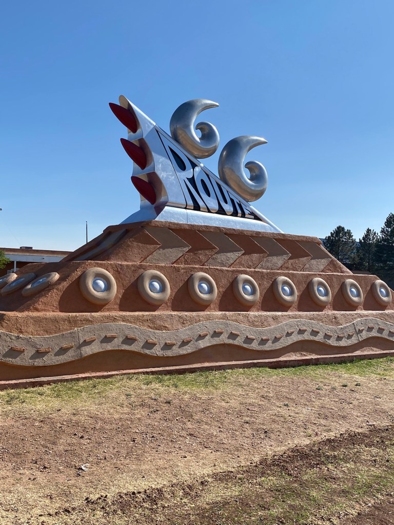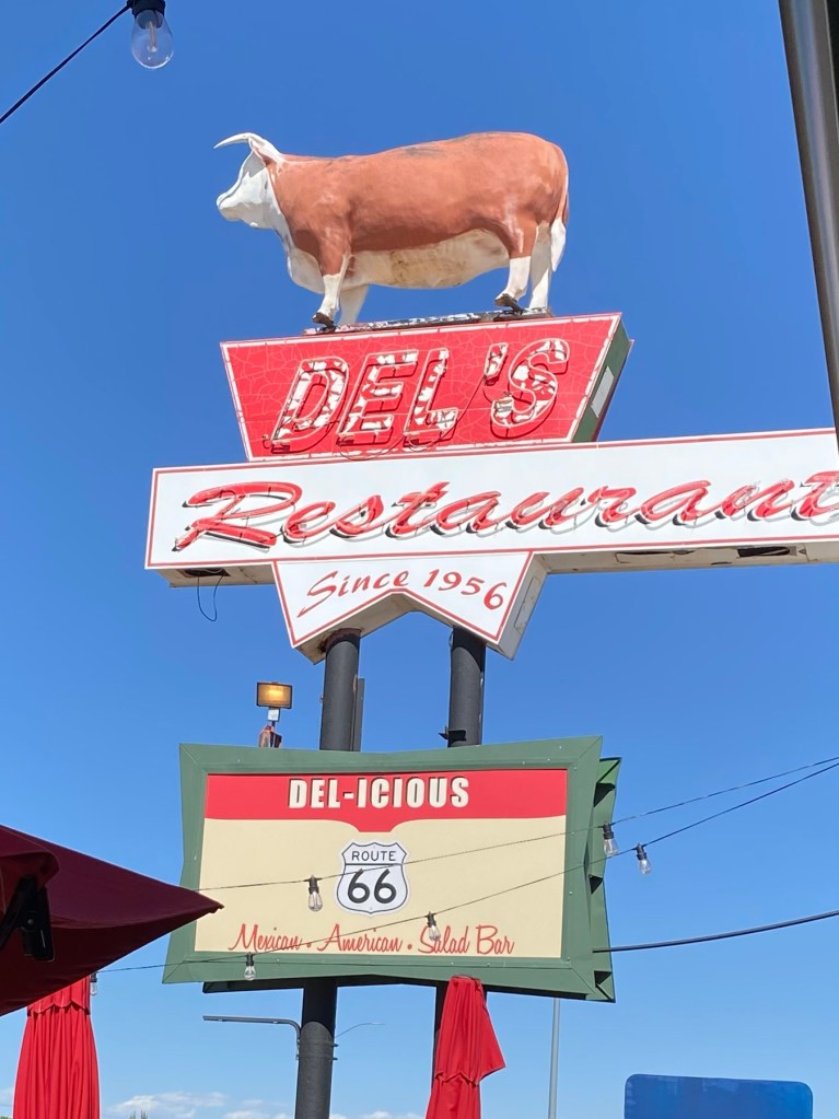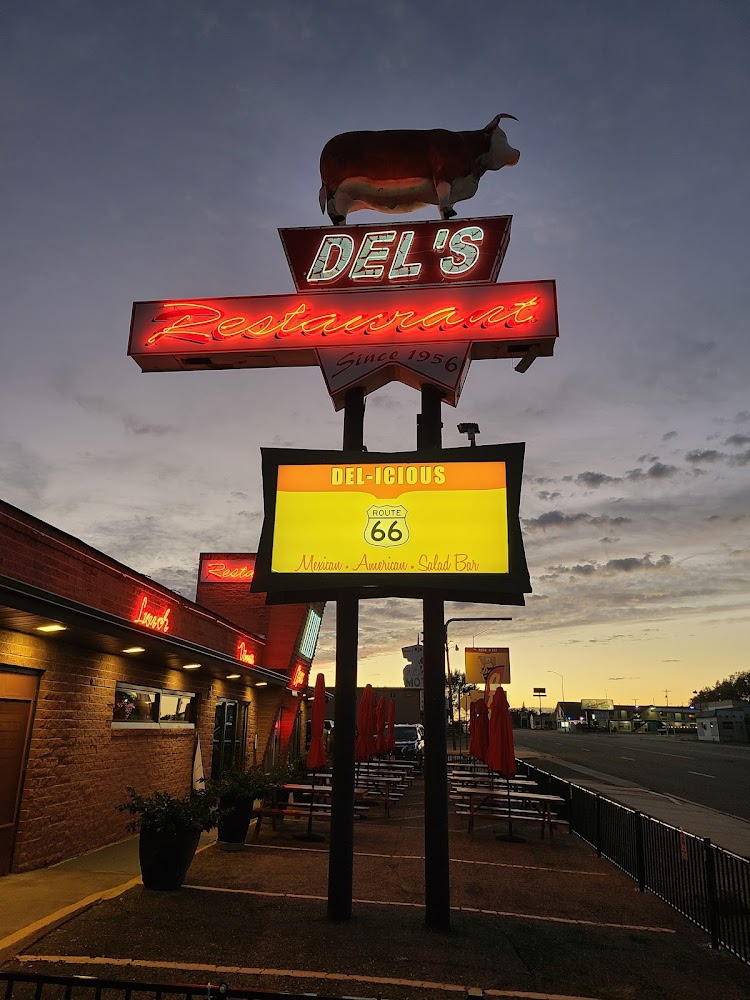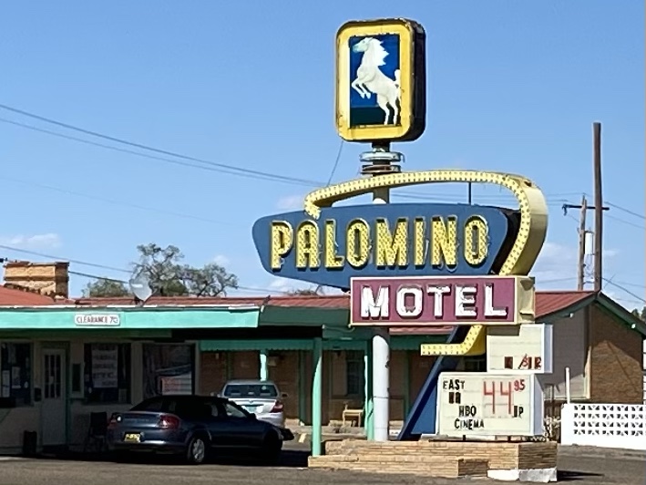 Entering the Land of Enchantment, New Mexico, the landscape changed abruptly. Partly because the rain departed over Texas, partly because of mesas among the low brush and sun-baked earth look like the opening of every classic western movie. We decided to explore the Route 66 town of Tucumcari, NM. There are many original motels and restaurants with kitschy neon signs. We picked Dell’s Restaurant to have a New Mexican brew and some delicious tacos, before taking in the town.