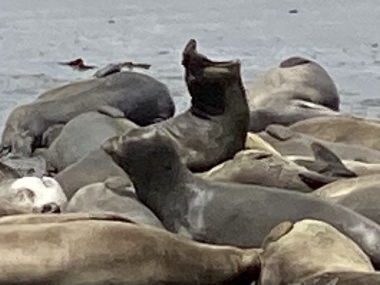 The town of Morro Bay has two very distinct landmarks. There are three smoke stacks from a now shuttered natural gas plant and a vey large dome-shaped rock. The stacks will be removed by 2030, the rock will remain. The Portuguese explorer Juan Rodriguez Cabrillo named Morro Bay’s landmark “El Morro” (Spanish for crown-shaped hill) in 1542. Morro Rock is a long-extinct volcano. Today the rock is a bird sanctuary and home to the protected Peregrine Falcons which nest there. We listened to live music and seals compete with each other as we ate delicious seafood. After, we walked around the cute shops.