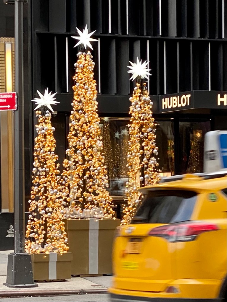 Heading uptown on Sixth Avenue, Radio City Music Hall is deep into its Holiday Spectacular season and the office buildings have their holiday decorations in place.
