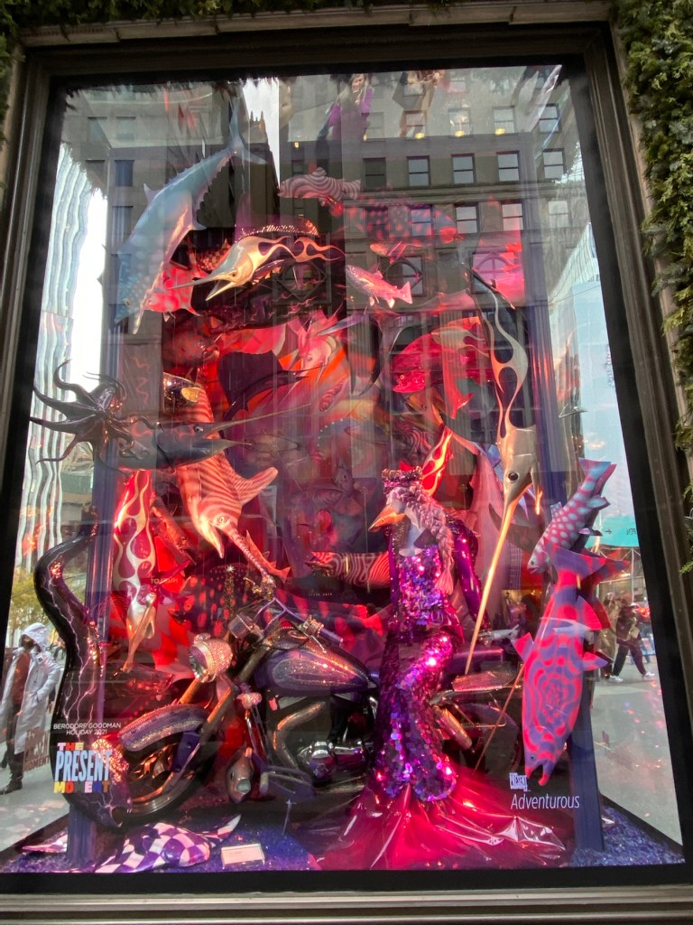 As usual, the windows at Bergdorf’s are spectacular. This year’s theme is the Present Moment. Each window celebrates a different mood including adventurous, harmonious and frisky. Sparkle, shine and reflection all fill the windows with great energy. Pardon the reflections.