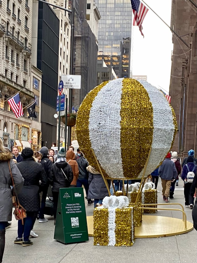 The crisp and clear weather was the nod to take a stroll to see the Holiday windows and the return of the tourist filled crowds on Fifth Avenue. The first of many trips in the coming weeks, this year’s windows are filled with hopes and dreams and happy memories. Additionally, this year, City Harvest has an added bonus teaming up with Fifth Avenue and adding photo ops and huge decorations on strategic sidewalk locations and a North Pole extravaganza at the fountain in front of the Plaza Hotel.