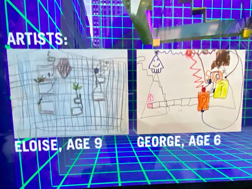 Saks once again has their light show spectacular climbing ten stories. The windows this season are inspired by children’s drawings. The city boys and girls clubs inspired each window with drawings of holiday dreams — of homes, beaches and games.