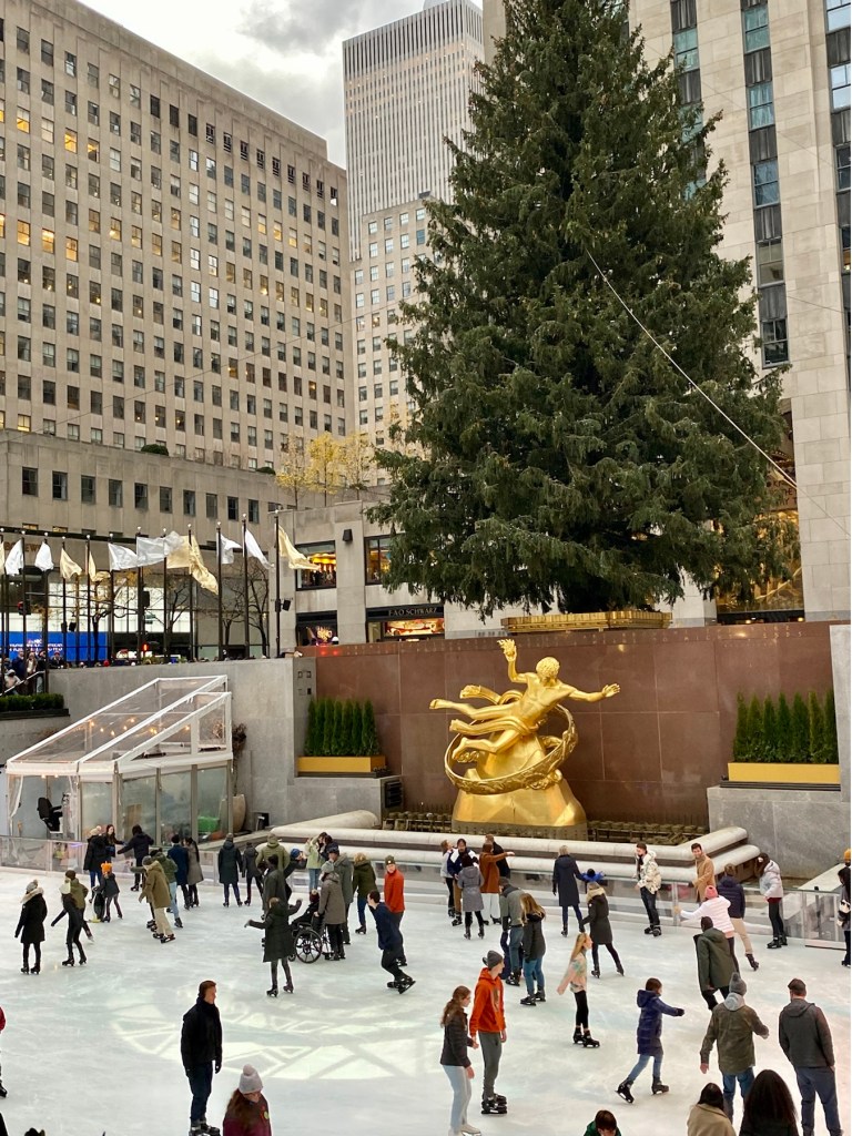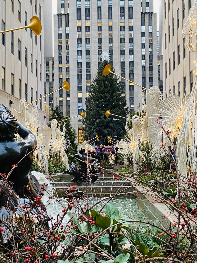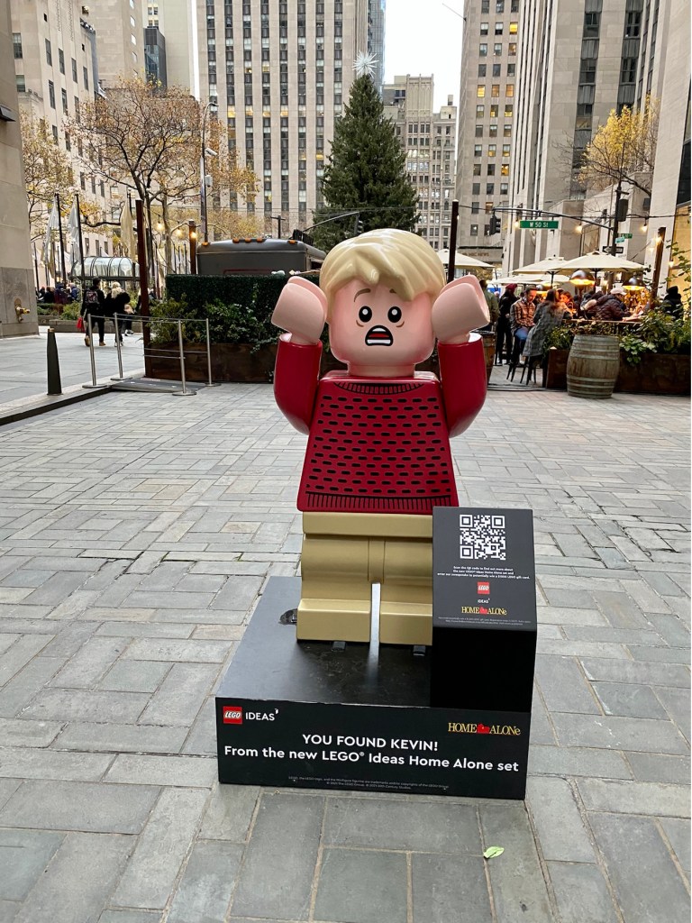 Rockefeller Center is ready for the tree lighting. The angels are trumpeting and Prometheus is overlooking the ice skaters. Across the plaza, there is a lego Kevin from Home Alone.
