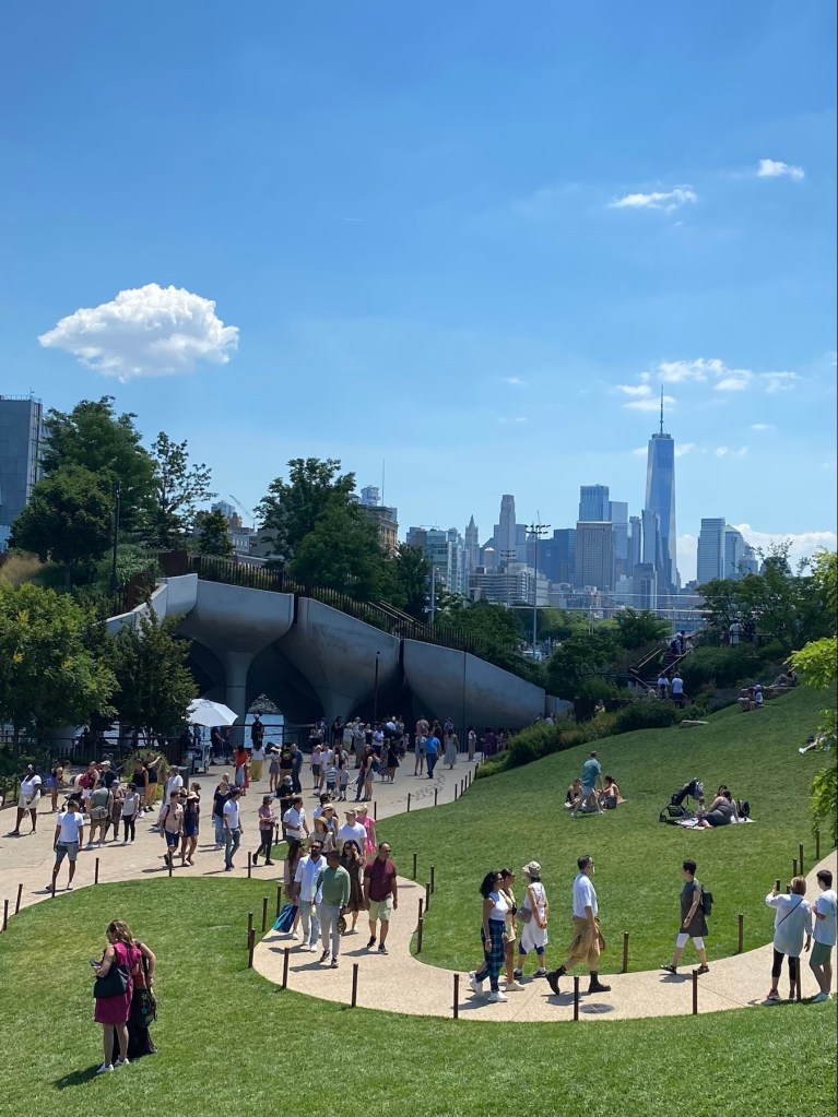 We left the gallery and continued south to Little Island, a wonderful park on the Hudson River at West 14th Street. Before entering, we spent a few minutes watching a ballerina making some sidewalk moves. The park is beautifully landscaped and offers amazing city views. Worth noting is the breeze off the river which was exceptionally refreshing on the very hot and sunny afternoon.