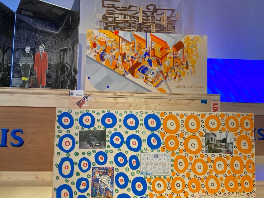 After this sweet exhibit, we headed to the former Barney’s on East 60th and Madison to see the Louis Vuitton 200 trunks show. For the 200th birthday of Louis Vuitton, the brand asked 200 visionaries to design and pay homage to LV and his famous trunk. The artists each had three months to complete their trunks. Each trunk has a story. There are knowledgeable guides in LV sweatshirts to offer information, plus QR codes on all the artists for a deeper dive. Barney’s space works well with this show which winds over three floors. There is a gift shop and an area where you can make your own miniature cardboard trunk.