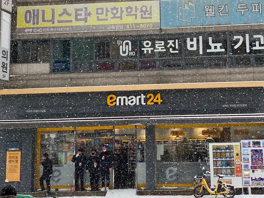 Although we packed for the tropical climate of Việt Nam and Cambodia, Seoul is approximately the same latitude as New York. And you guessed it, we experienced a snowstorm. This prevented an outdoor adventure in the park and a walk in the suburban downtown. We did manage to get a second delicious meal at a sushi bar and we watched the snow fall over the city as we learned the Korean traditional way to share Sake with friends and relatives.