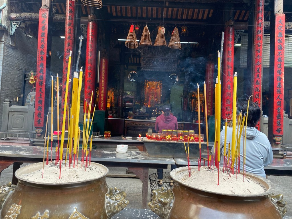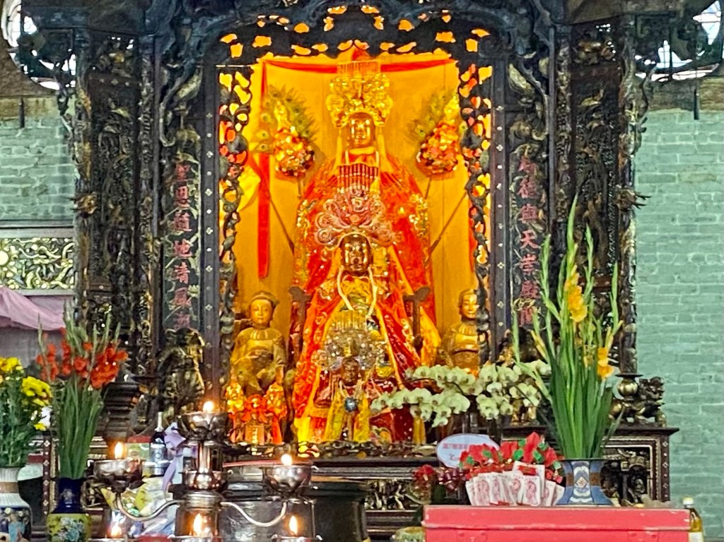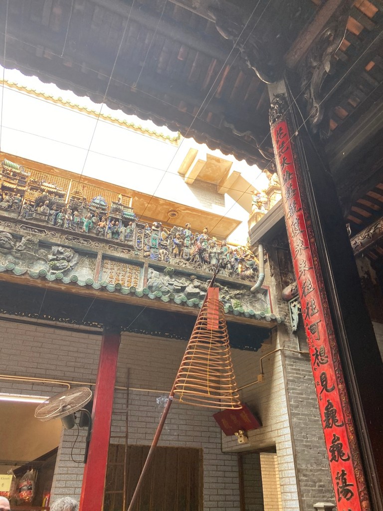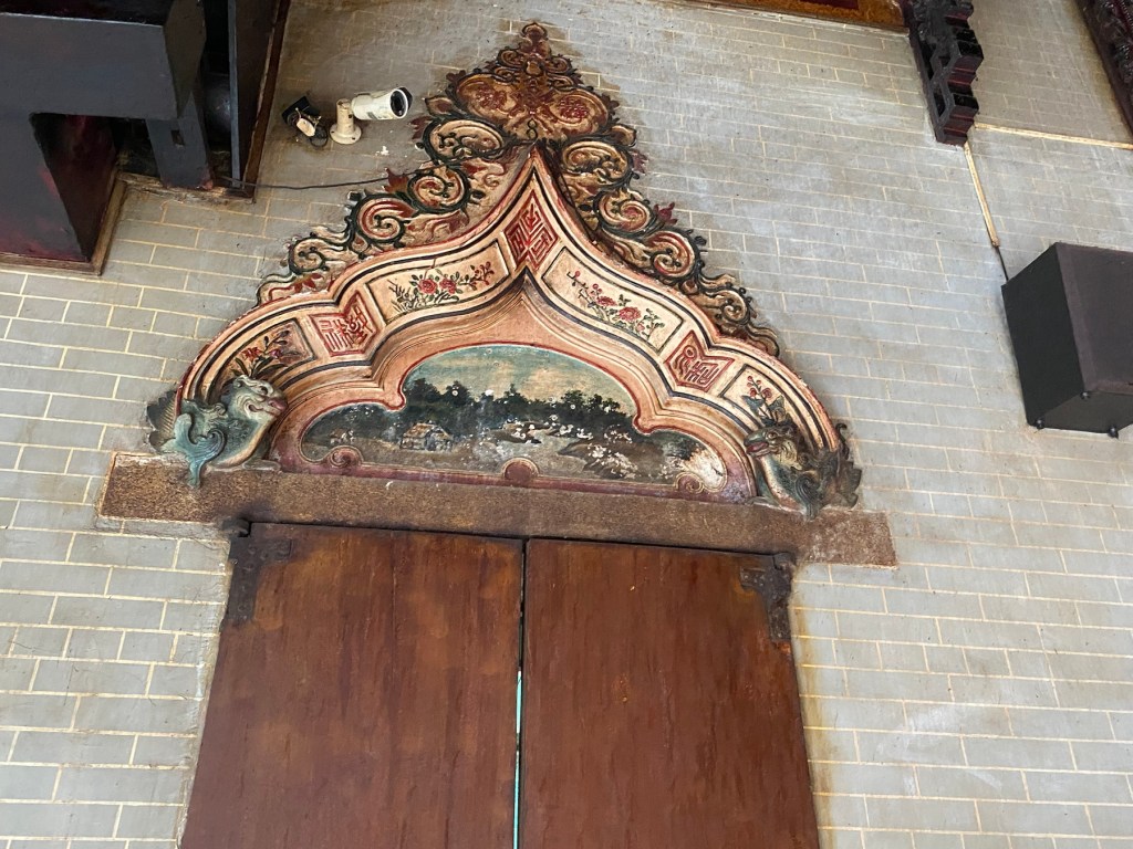 HCMC/Saigón has 24 districts; most of the tourist attractions are in District One, where the French set up government buildings and an economic center. District Five, however, is the central area of historic Saigon. Cho Lon, or Chinatown, was settled in the late 17th century by ethnic Chinese. It was known by its Cantonese name, Tai-Ngon (Embankment) which was often mistaken for the similar sound ‘Saigon’. It is now dubbed Cholon (Big Market). If you believe the internet, it is the largest Chinatown in the world. We took a tour which began at the Tue Thanh Assembly Hall, which was built in the late 1700s and served many purposes including immigration management and worship hall. A donation gave us the opportunity to make a wish and light some incense which will burn for a week. Following the temple, the tour included a tuk tuk ride to a wholesale market. We walked through stalls filled with everything from hats and shoes to dried fish, all with huge minimum purchases. There is a fountain at the back of the market with a half dragon-half alligator sea monster. There is a fear that this creature lives in the river. All the boats in the river have eyes painted on them to frighten the monsters. No swimming please.