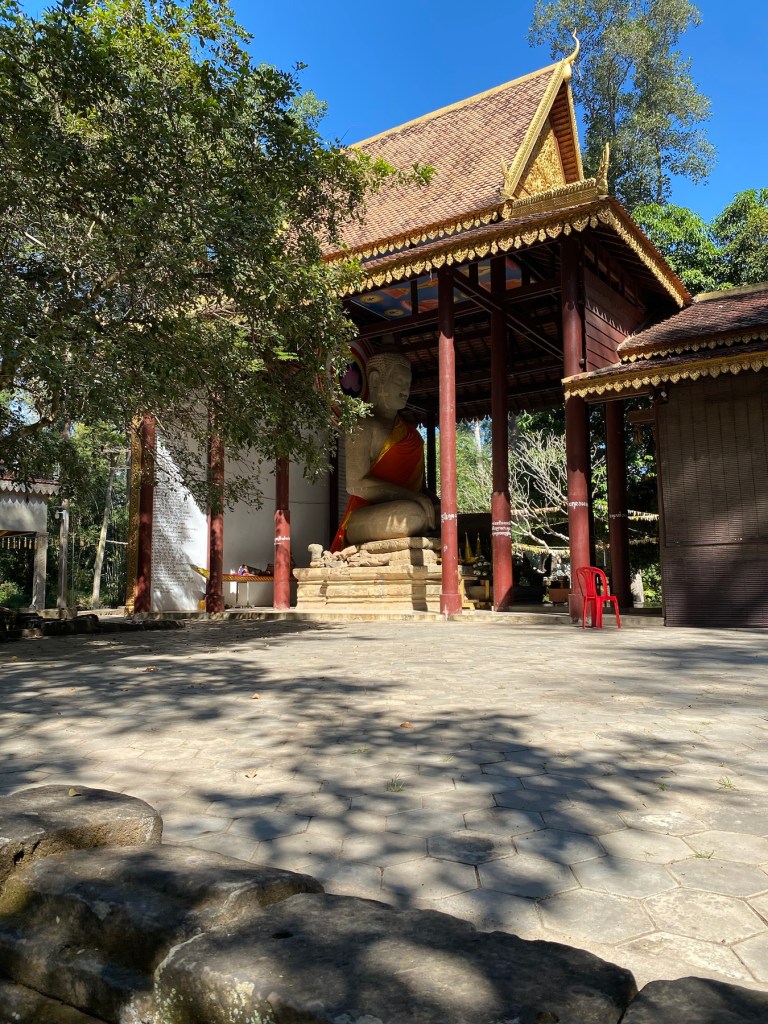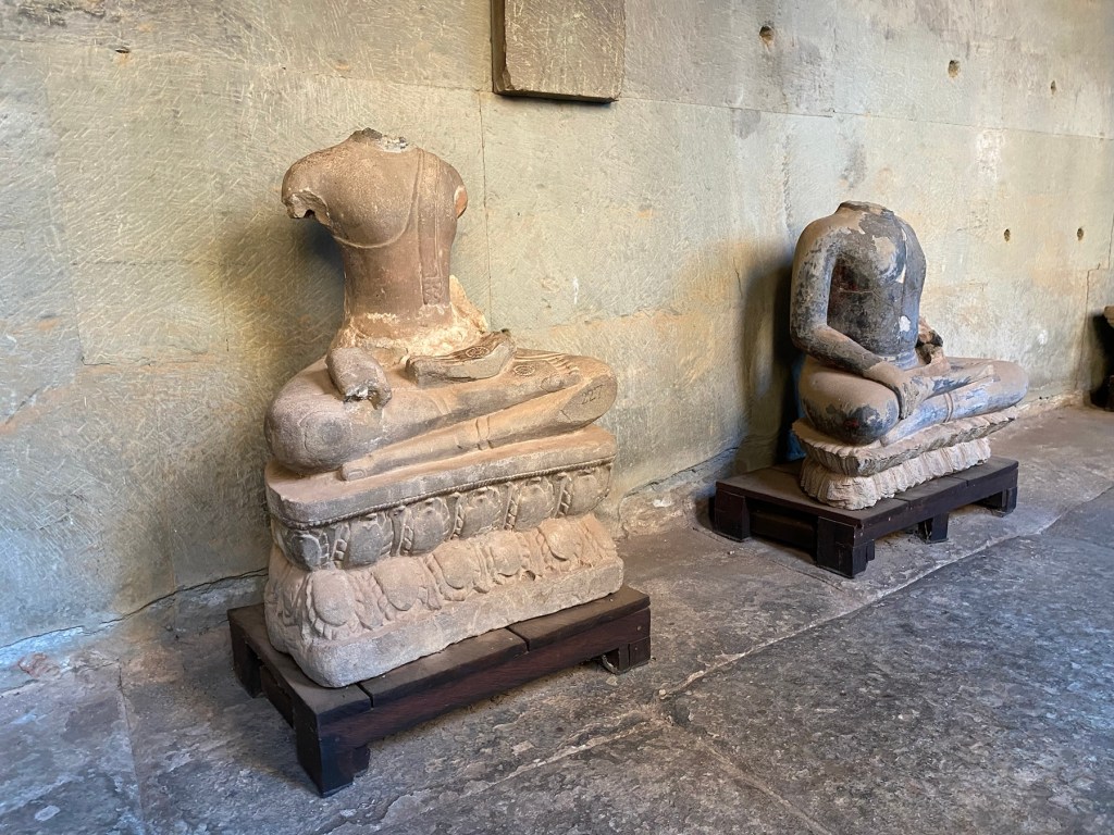 After exploring the grounds we moved to the Terrace of Elephants where elephants were put through war training exercises. They were protected by stone lions. From here, our guide walked us down a path which brought us by a newly restored Buddha statue. From the front, all looks fine, from the back, not so much.