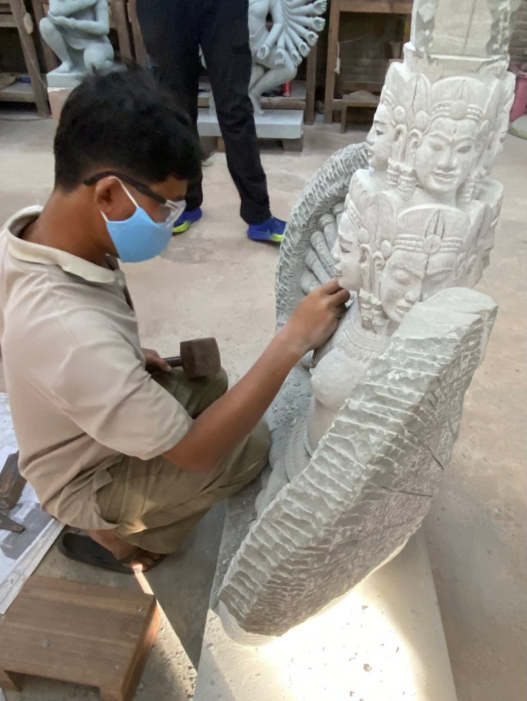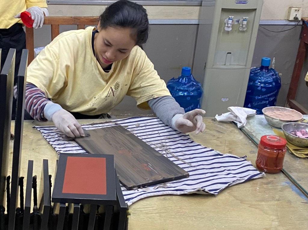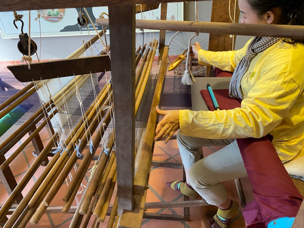 As the temperature climbed, we took a break from the temples and headed to the Artisans Angkor center. Here, rural residents are trained in crafts which include producing and weaving silk, sculpting and carving wood and stone, and designing lacquer and silk painting. These artisans are creating new works of art and also helping to create works for restoration projects for the temples.