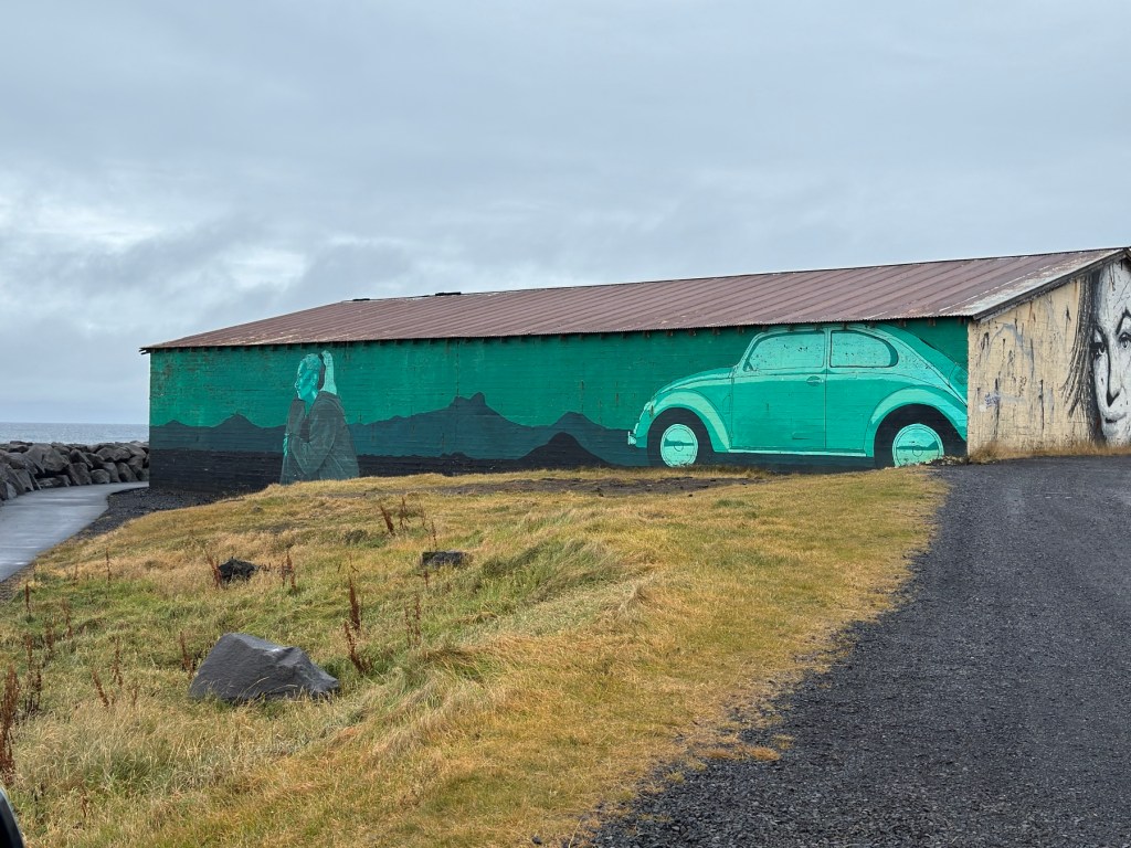 A small costal town just past Arnarstapi is filled with creative and colorful murals. We enjoyed looking at them and then having a delicious local lunch at a mom and son run restaurant.