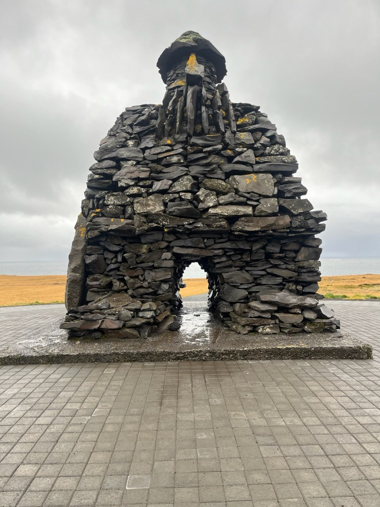 Arnarstapi is close to the tip of the peninsula and has a large sculpture of Barour which leads to a natural bridge and steep stunning lava cliffs which meet the ocean. Besides going mad and living in a cave, it appears that Barour is a protector of the area.