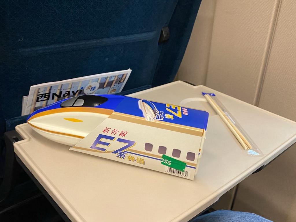 Famously, there are bento-style meal boxes named Ekiban (pronounced air-key-ben). The history is fascinating and linked to the development of the railroad. The origin dates to 1885 when several rail lines were completed. Vendors would be on the tracks selling simple onigiri and pickled radish to travelers as they boarded the trains. Today there are multiple shops at the stations selling wide variations of ekiban at various price points. Each prefecture prepares ekiban with specialty regional food. We are already looking forward to the snow crab option in Kanazawa. Also available are cute keepsake souvenir boxes and bottles. We got a basic rice onigiri and a souvenir bullet train kids meal.