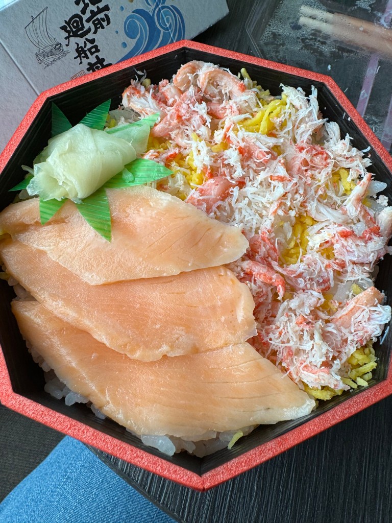 It seems torrential rain is in our Japan DNA. We boarded the Thunderbird Shinkansen train with our Kanazawa ekiben box filled with snow crab and tuna. Just yum.